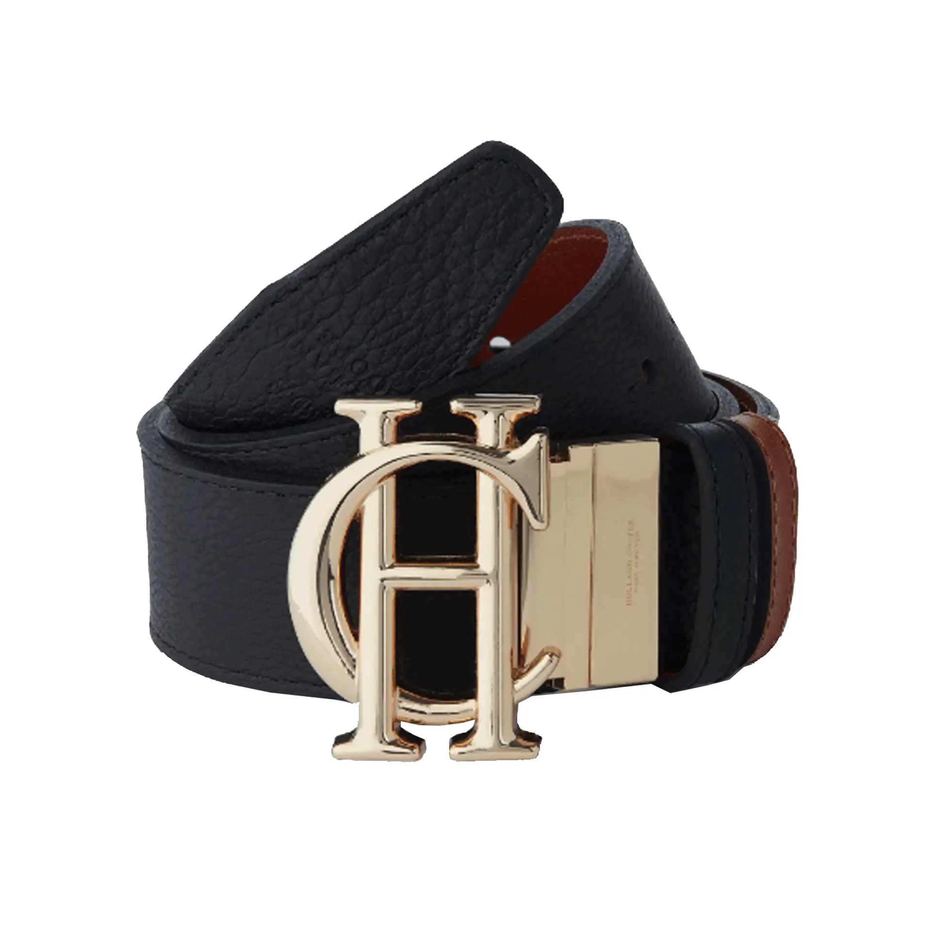 Classic Reversible Holland Cooper Leather Belt, made in England from quality soft leather. Features two belt loops, and a gold plated Holland Cooper signature buckle. Comes in a super smart gift box.