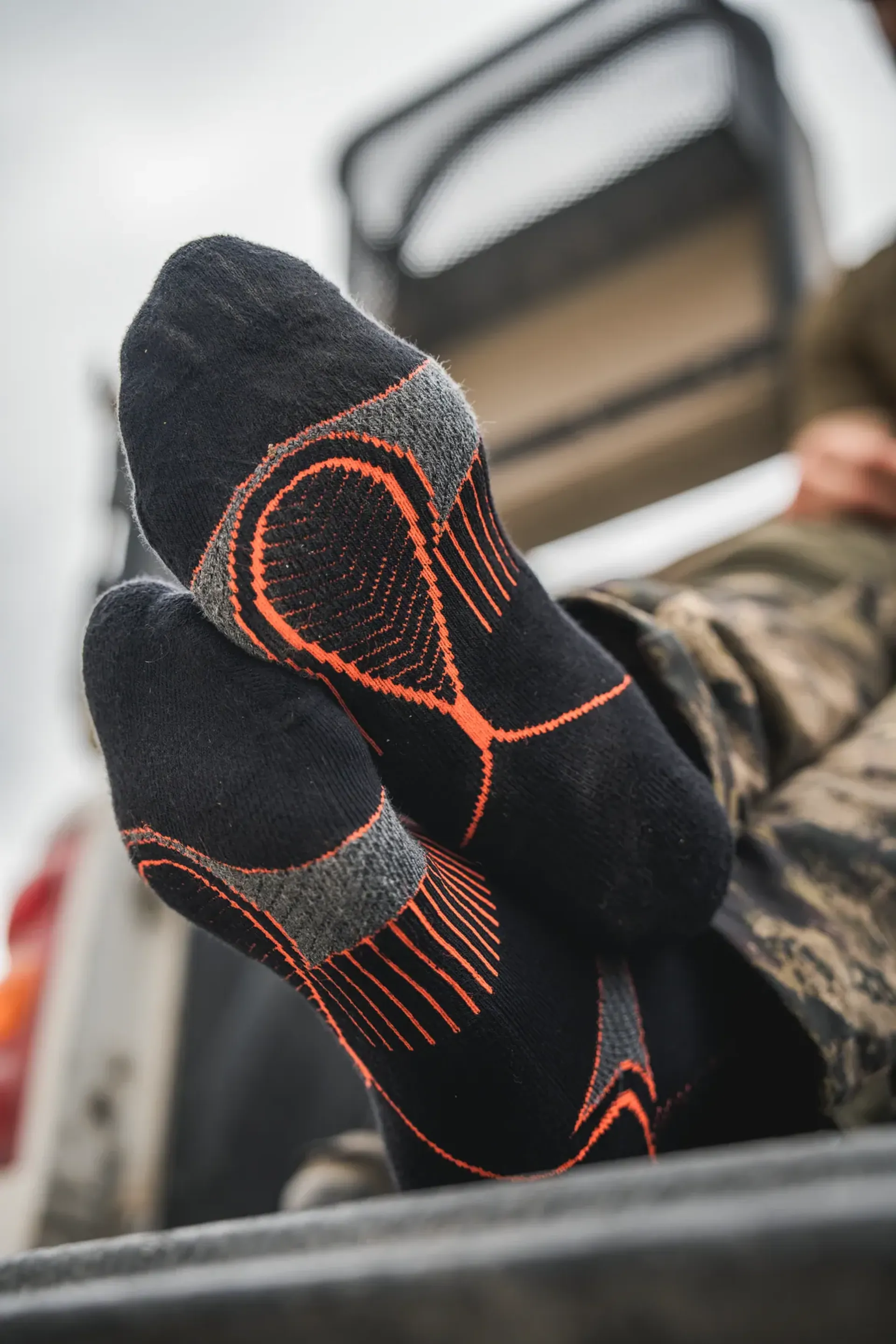 Designed for high activity and warm conditions, the Field Coolmax Socks are made with a special Coolmax blend that pulls moisture and heat away from your skin. Each pack includes a pair with green trim and one with bright orange trim, featuring flat toe seams, reinforced heels and toes and cushioned footbeds for enhanced comfort and durability.
