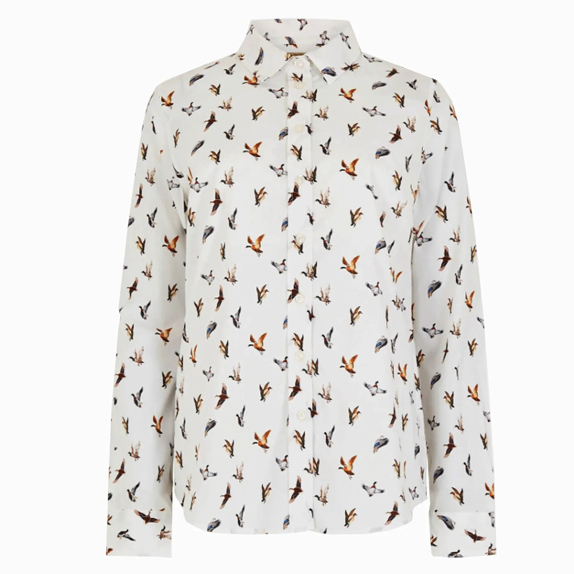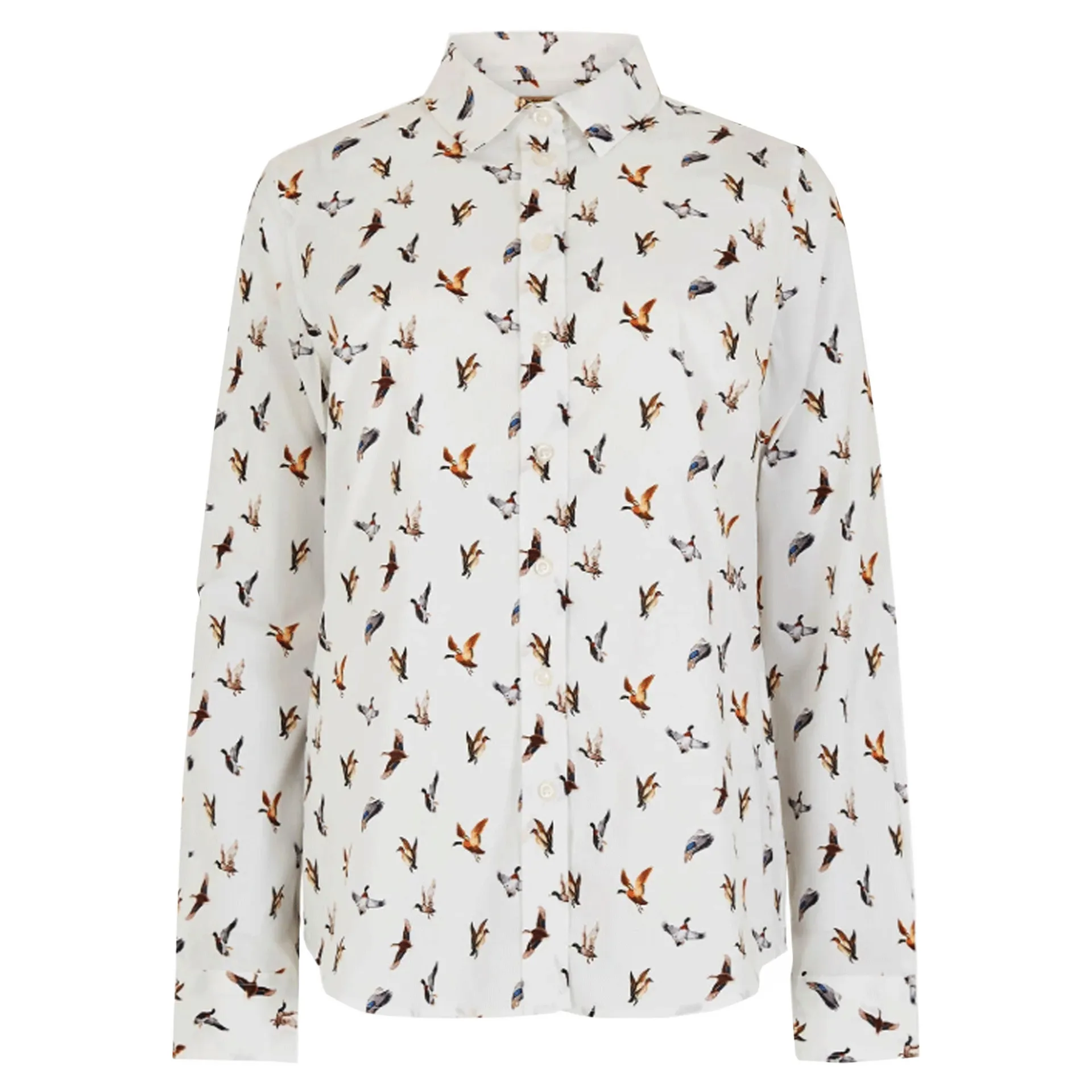 Tthis cracking ladies blouse, is blasted with ducks! Highly fashionable it features a slight stretch for comfort, imitation pearl buttons, and curved hem. Add it to your wardrobe as a staple piece.