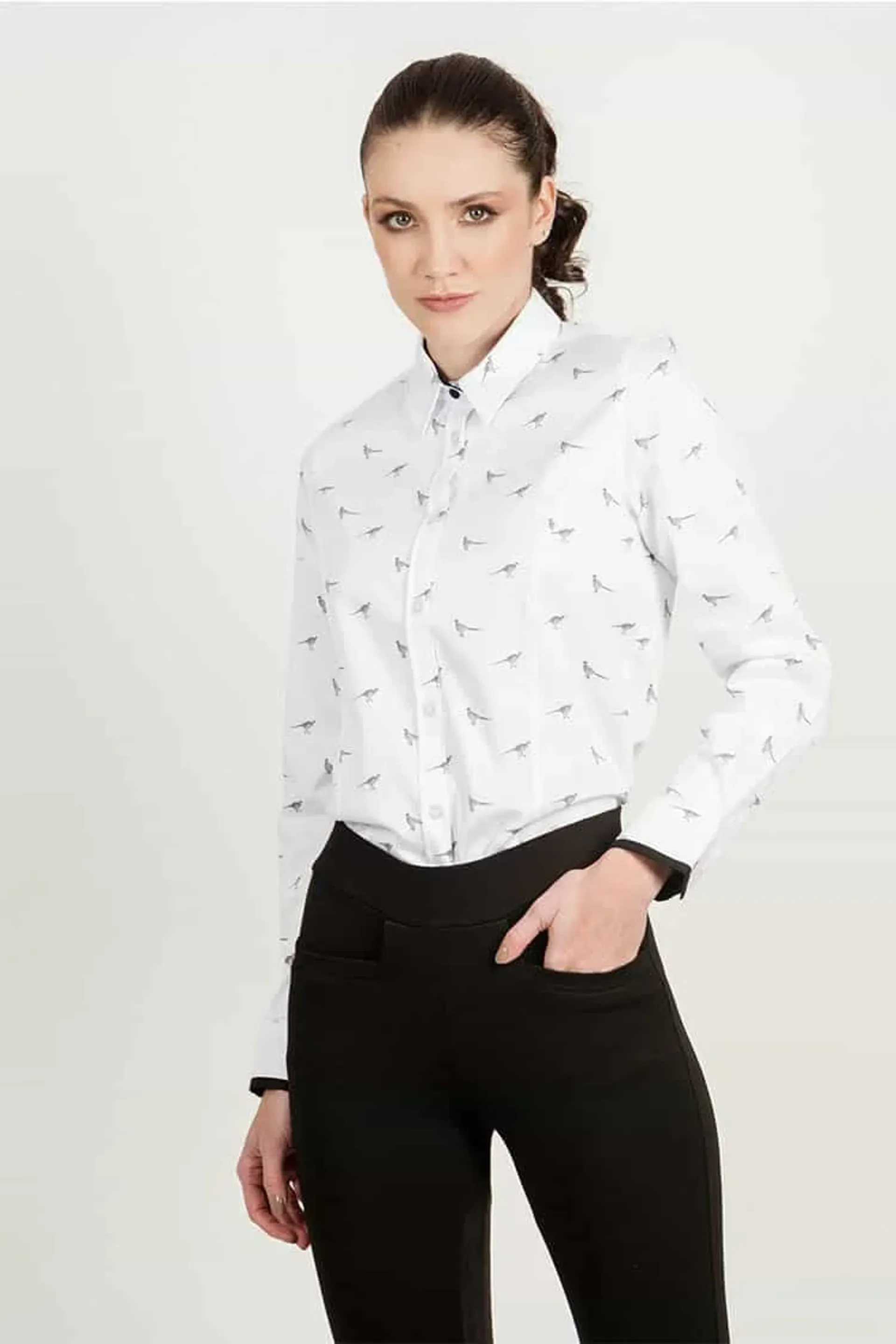 A classic country print on a cotton fitted blouse, the perfect country look. Beautiful black piping and top cover button, it’s proved to be one of our most popular designs to date. And now with Lycra for added comfort and stretch in our most luxurious fabric ever.