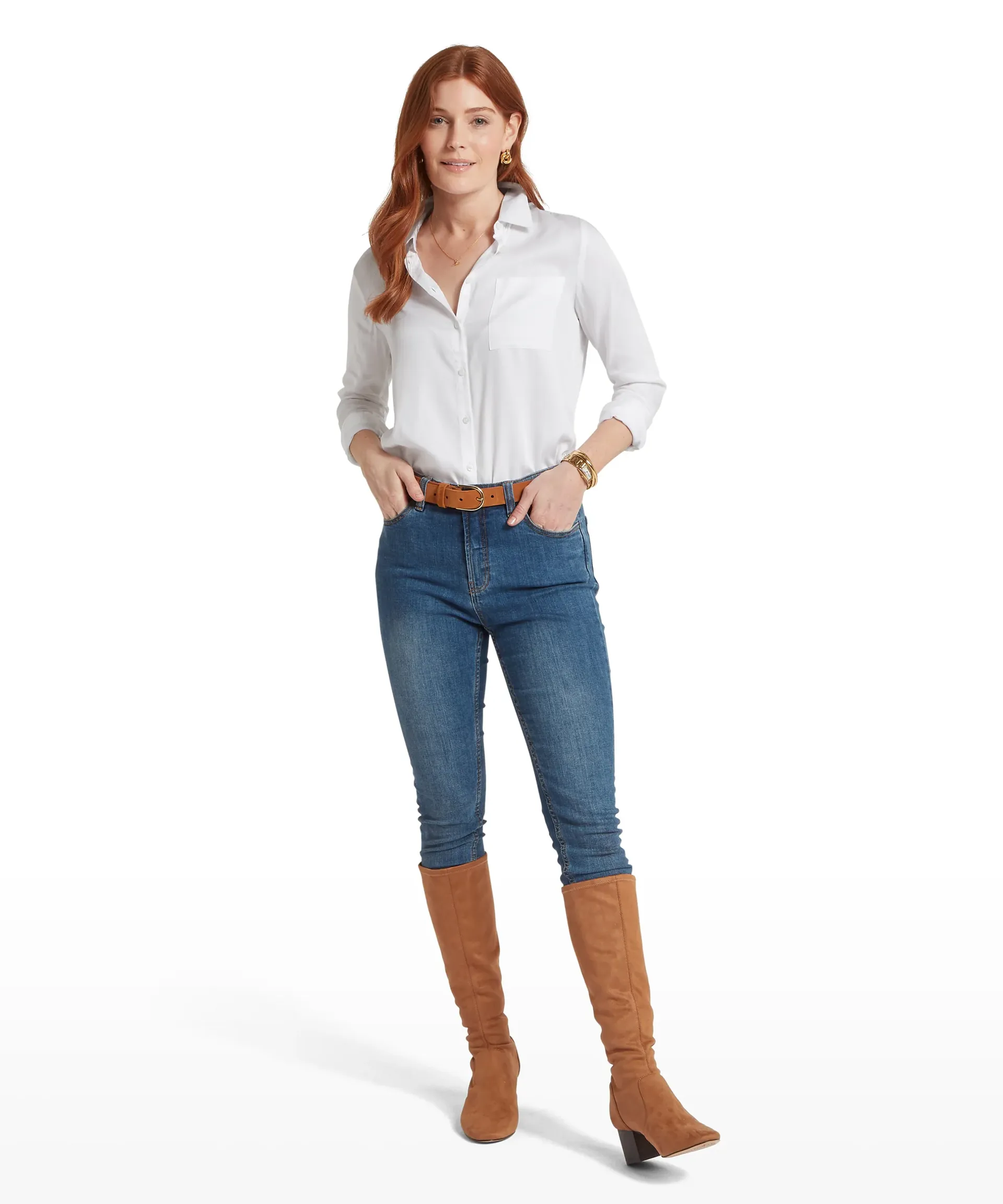 Featuring a classic collar, a subtle chest pocket, and an A-line silhouette, the Alton Blouse flatters every figure while allowing easy movement. Side splits and a dropped hem add contemporary detail and versatility—wear it tucked in for a refined look or loose for relaxed style.