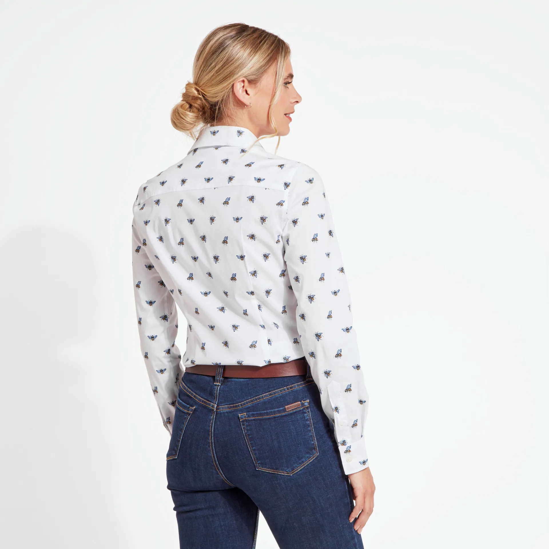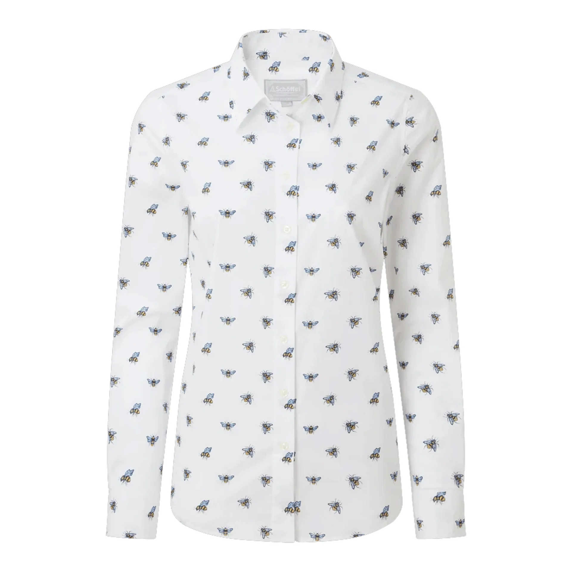 Schoffel Norfolk ladies blouse with a very stylish bee design new for 2023. A beautiful tailored shirt, which boasts a contemporary fit and stands out from the crowd. Made with 97% cotton/ 3% elastane, it is a comfortable shirt with some stretch, for that chic and luxurious look. Machine washable.