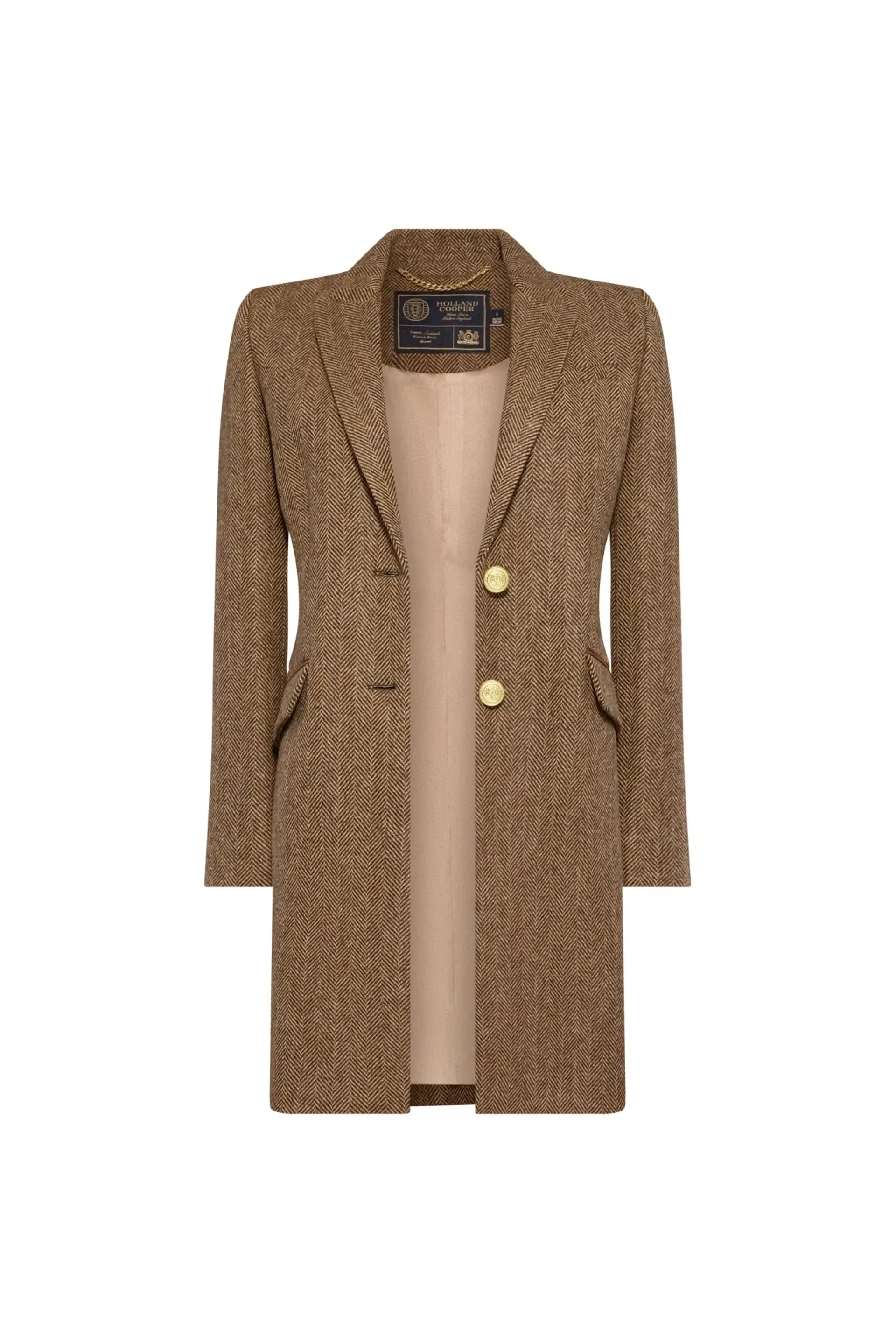 Holland Cooper Highgrove Coat Large Scale Brown Herringbone