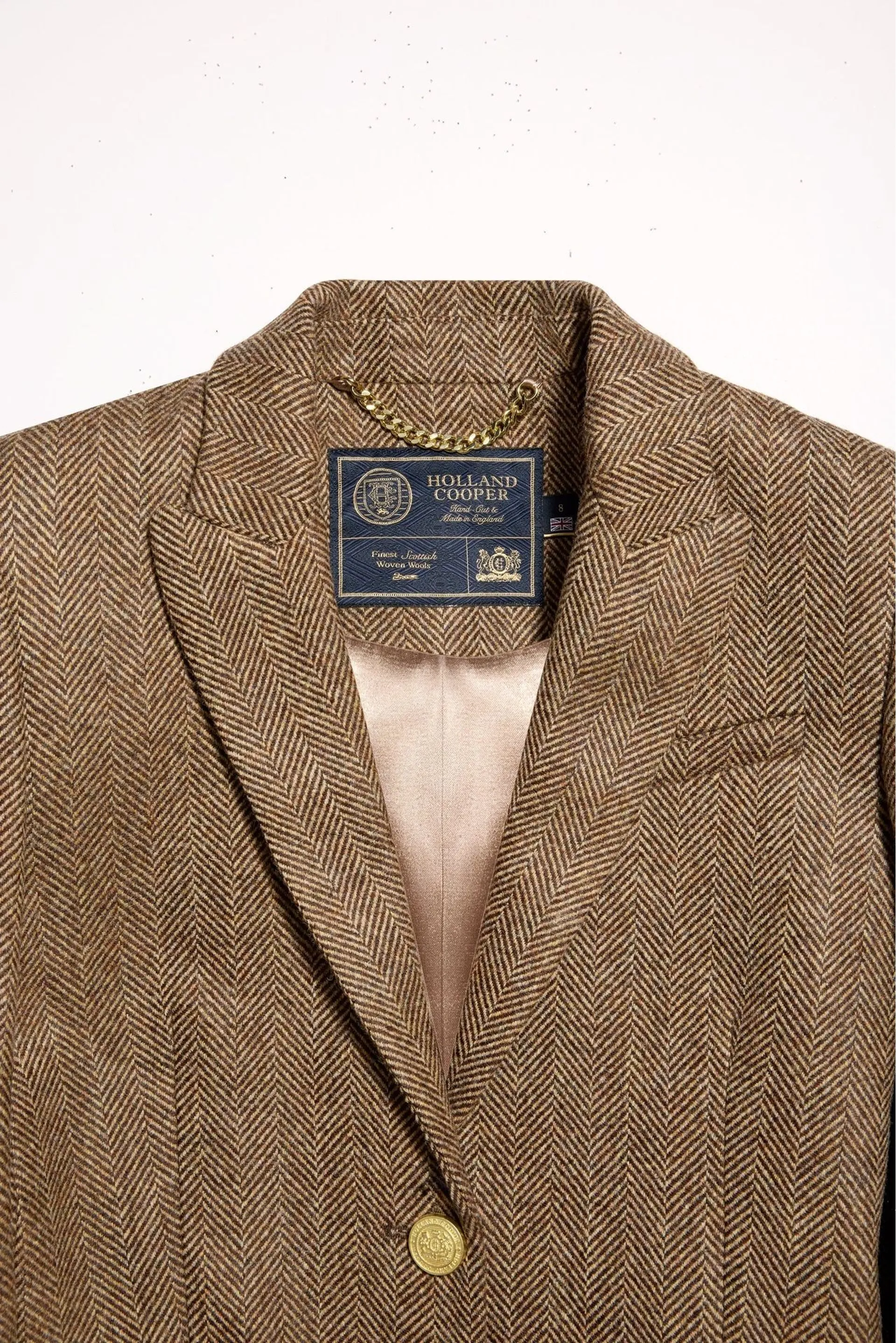 Question(s) answered about Holland Cooper Highgrove Coat Large Scale Brown Herringbone