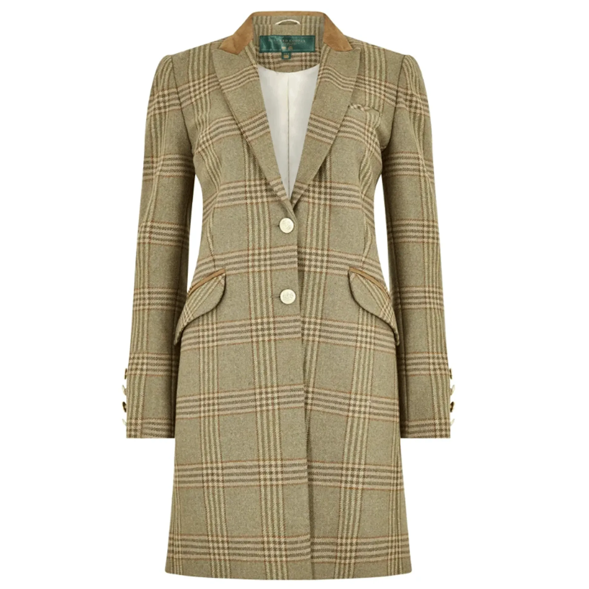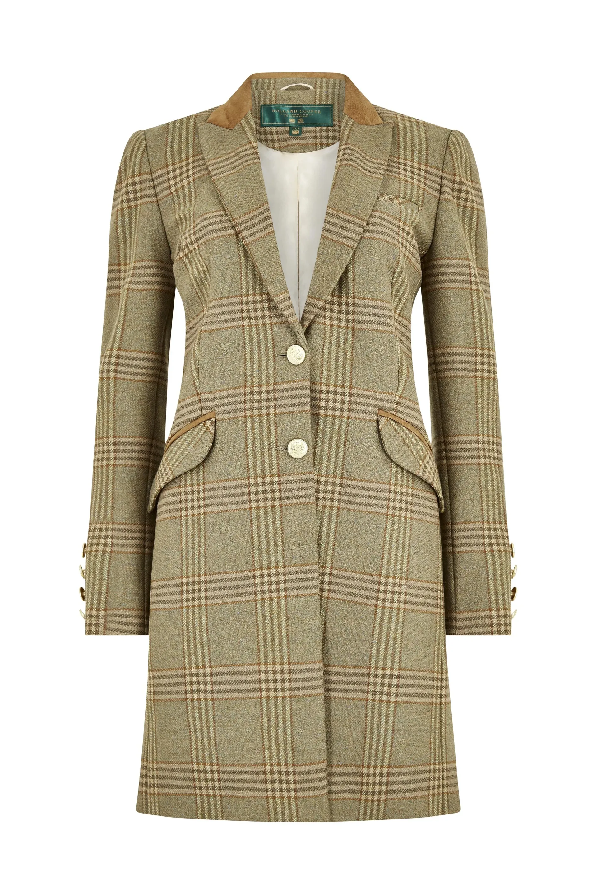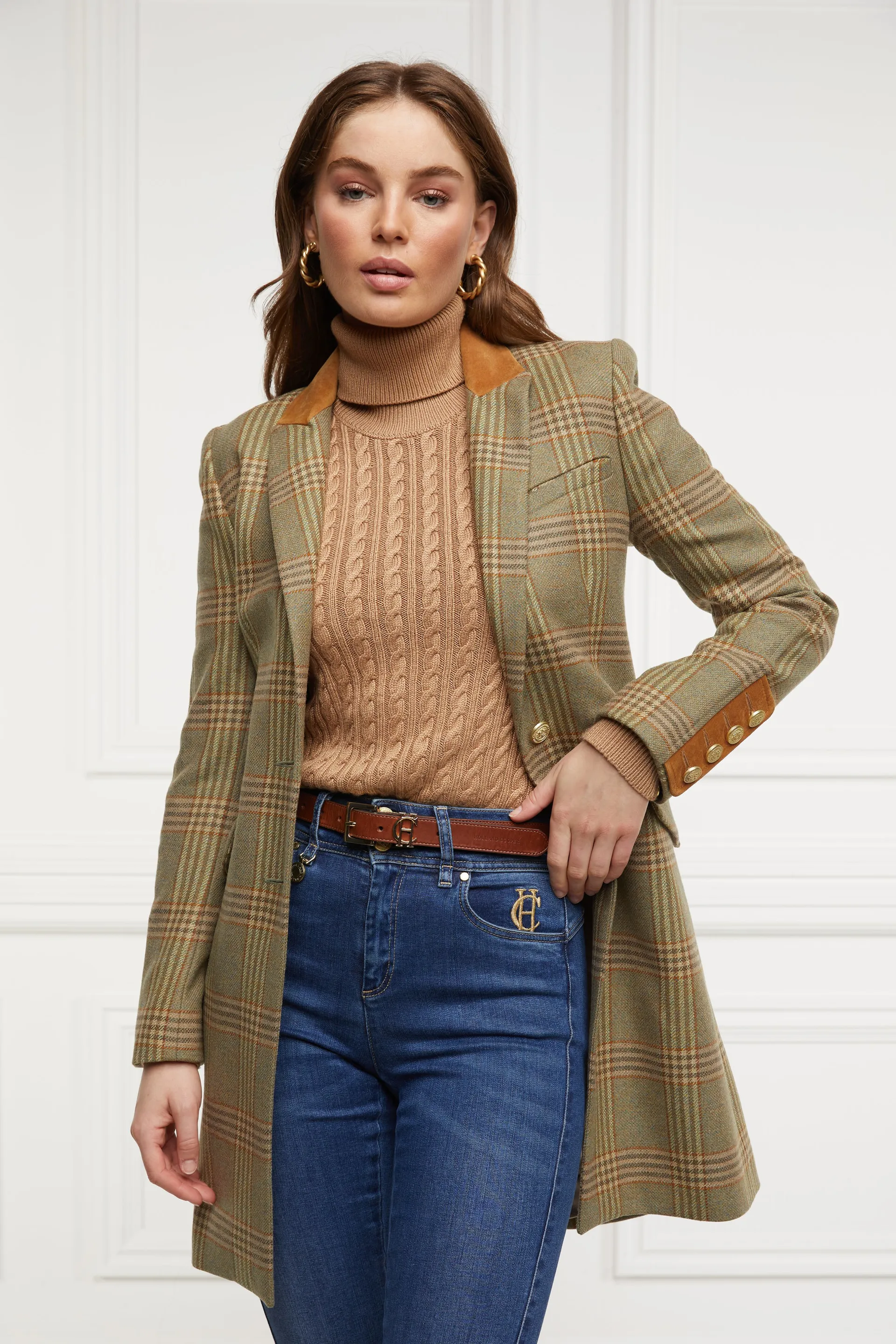 Super stylish ladies tweed jacket from the Holland Cooper range. Beautiful single breasted wool jacket, made in the UK, and styled with the popular HC crested gold buttons, giving that chic look.