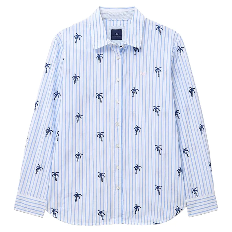 Crew Clothing Relaxed Fit Embroidered Poplin Shirt Blue Palm Tree