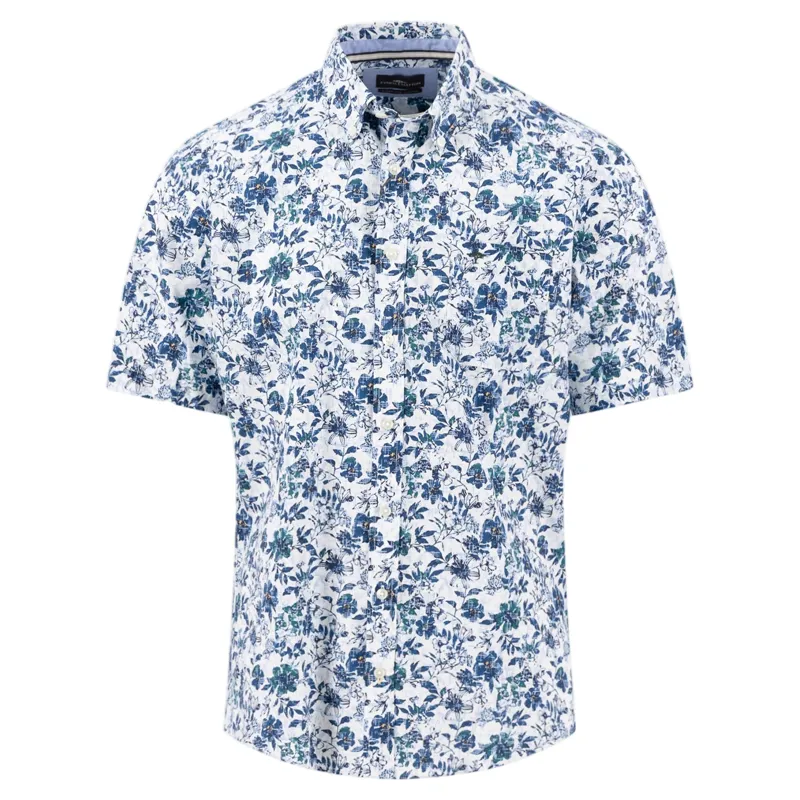 Fynch-Hatton Premium Flower Print Button Down Shirt in Navy
