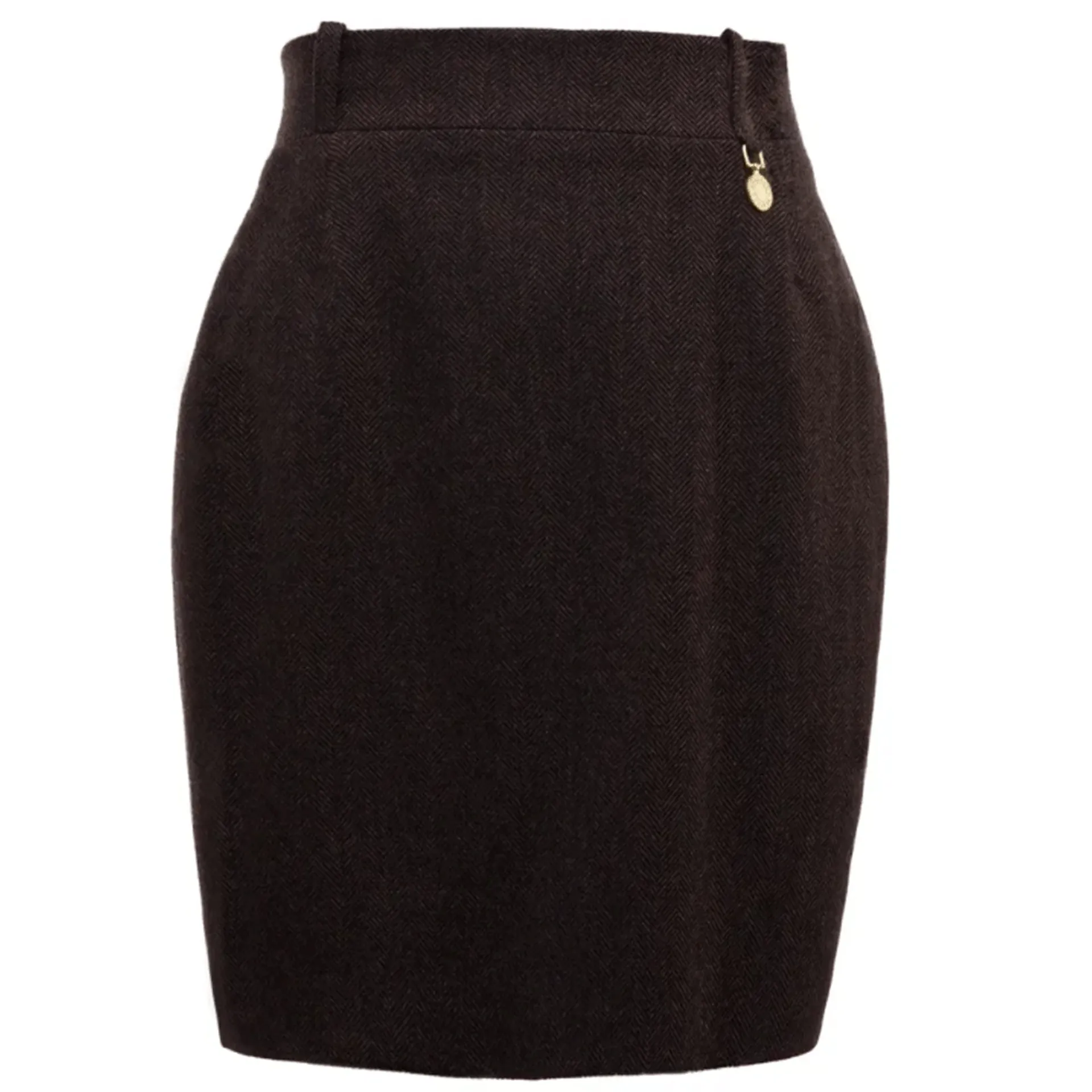 Holland Cooper Regency Skirt Chocolate Herringbone