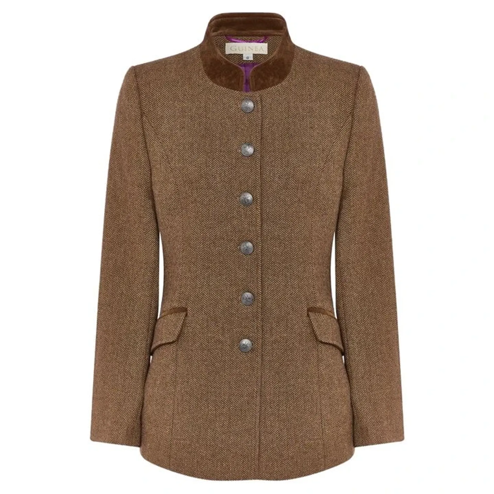 Metal military buttons and deep velvet trims give this jacket the perfect finishing touches. The stand up "Nehru style" velvet collar gives a crisp and classic outline for understated elegance. Guinea's Newbury is made with expert tailoring for a perfect fit. With a standard fit, this jacket works for an array of body shapes.