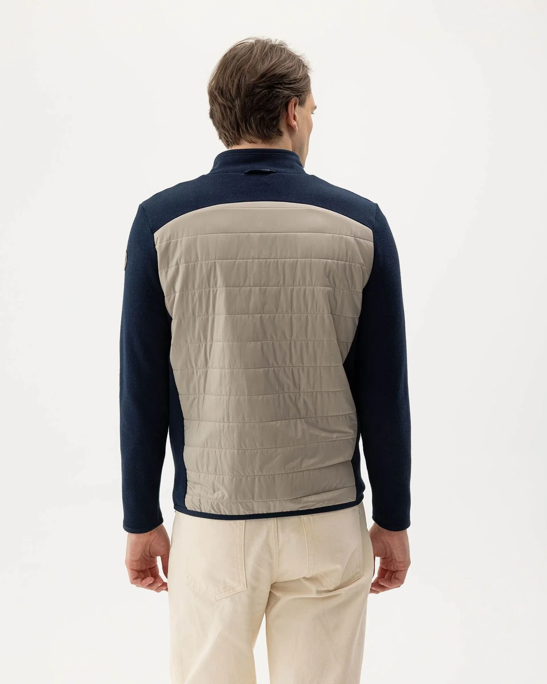 Knitted windproof jacket in cotton with water-repellent quilted details at the front and back, featuring a two-way zipper and regular fit.