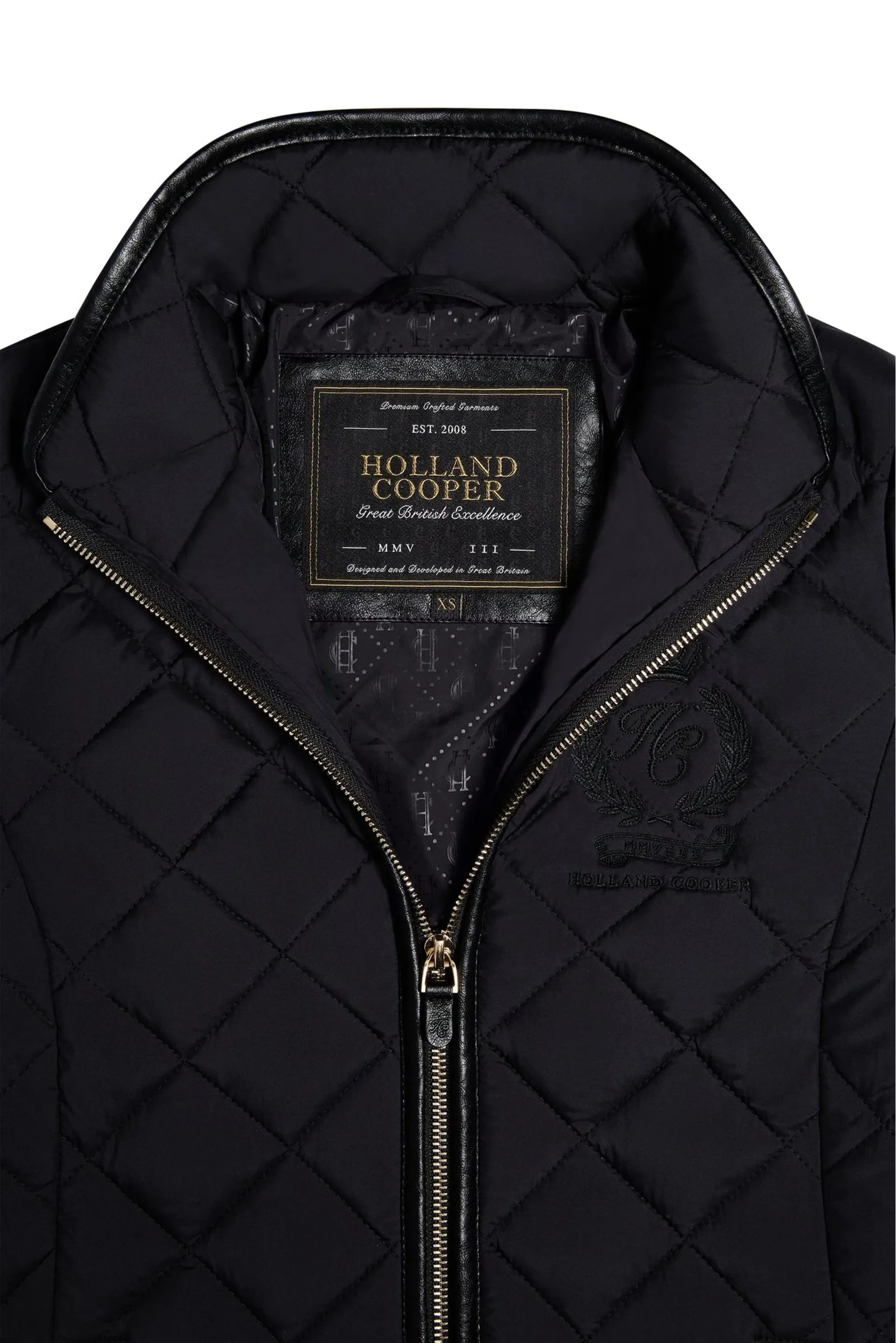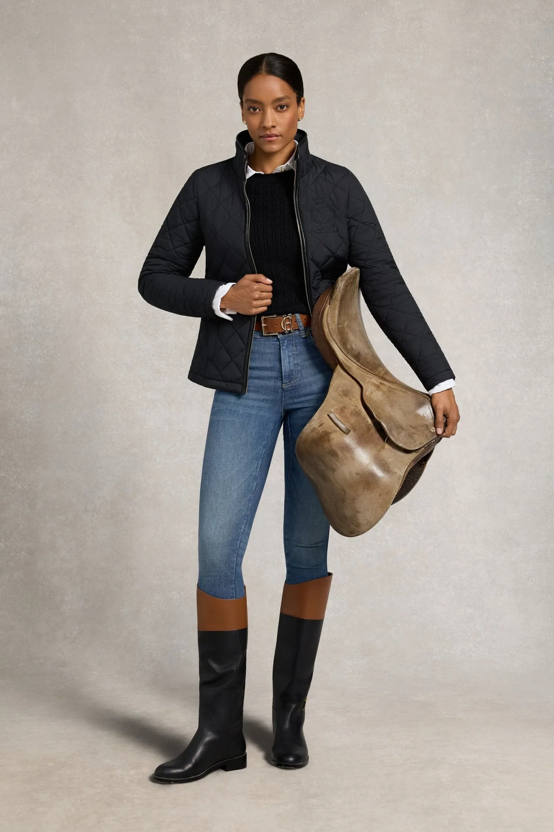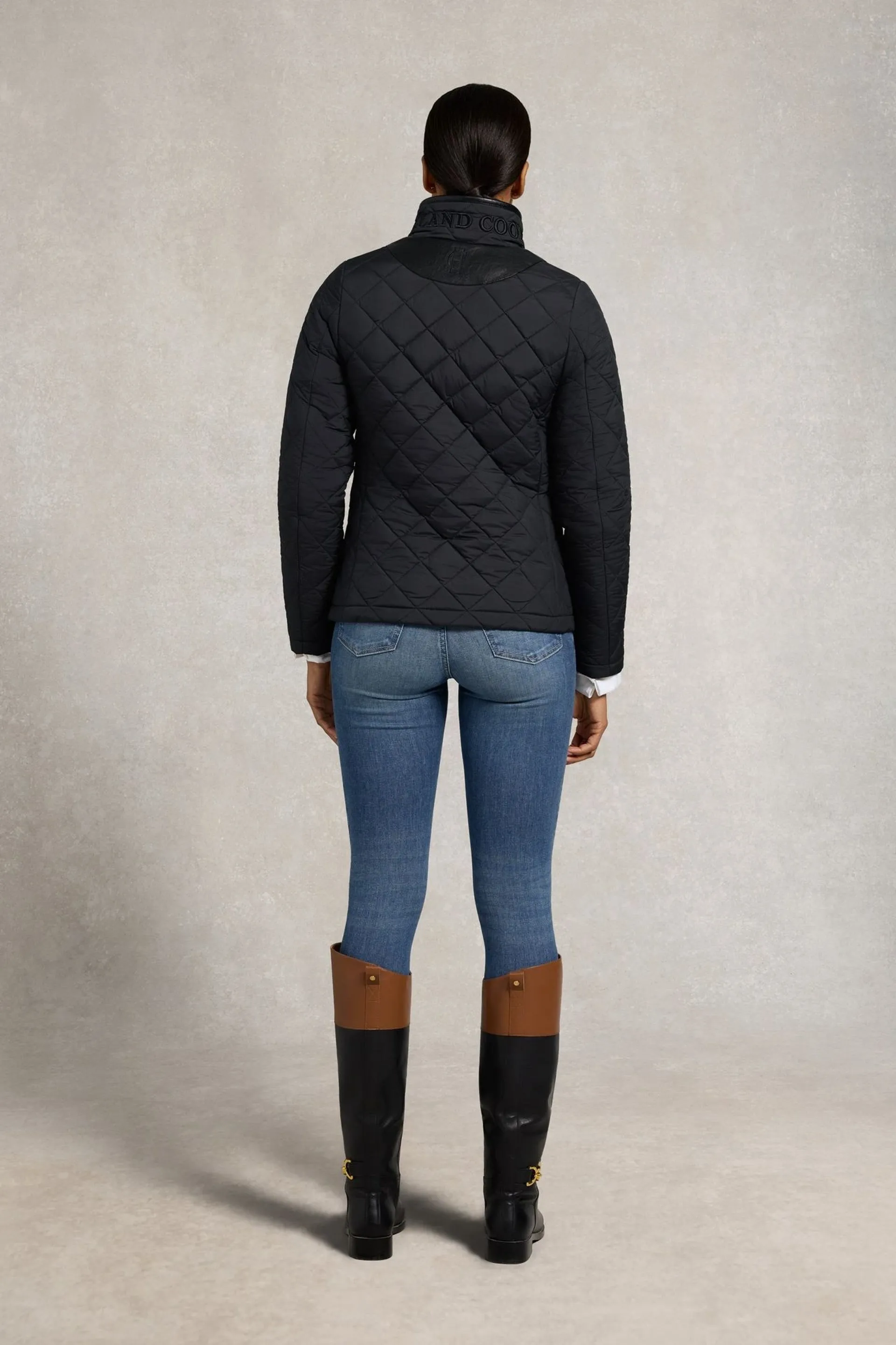 The jacket is complete with welt front pockets and a high neck collar. Holland Cooper's signature heritage crest is embroidered at the chest. This is a contemporary countryside essential, designed for comfort, style, and year-round layering.