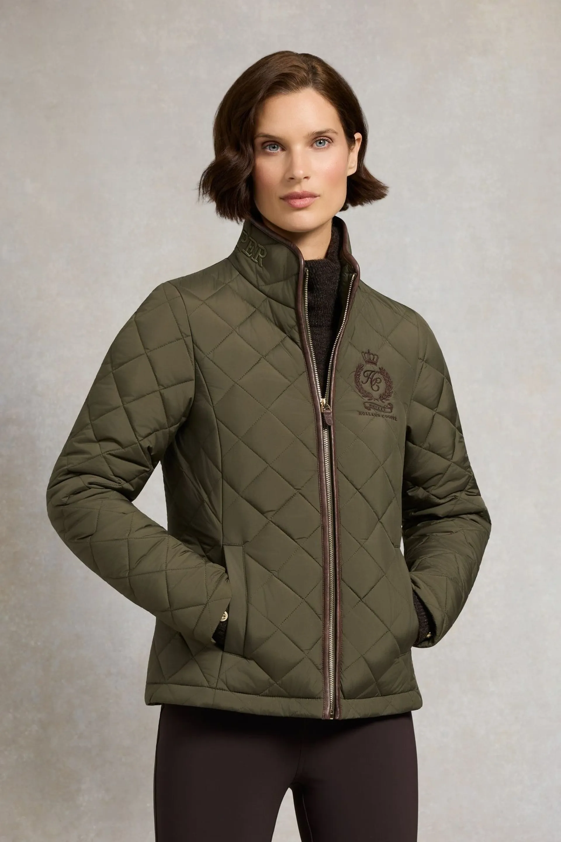 The jacket is complete with welt front pockets and a high neck collar. Holland Cooper's signature heritage crest is embroidered at the chest. This is a contemporary countryside essential, designed for comfort, style, and year-round layering.