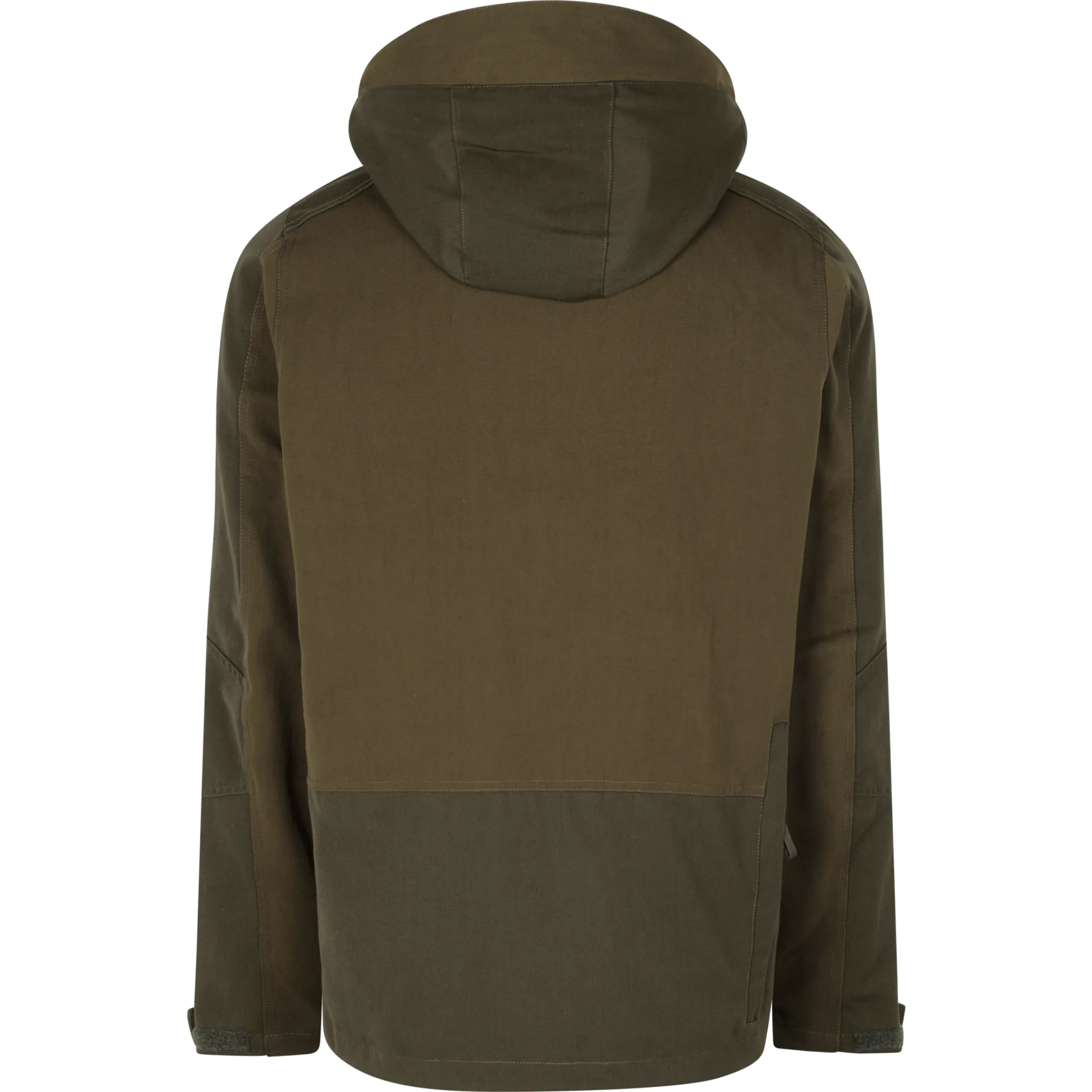 The Trax Jacket is designed for people who work out in the elements. Crafted from 100% polyester with a Seetex® membrane, it's built to withstand harsh conditions. This jacket features a detachable zip hood, big pockets with water-repellent zippers and a game pocket, tailored for driven hunts. Its anti-soaking lining, adjustable hemline and storm cuffs add to its functionality. Pair with the Trax Trousers for a complete look.