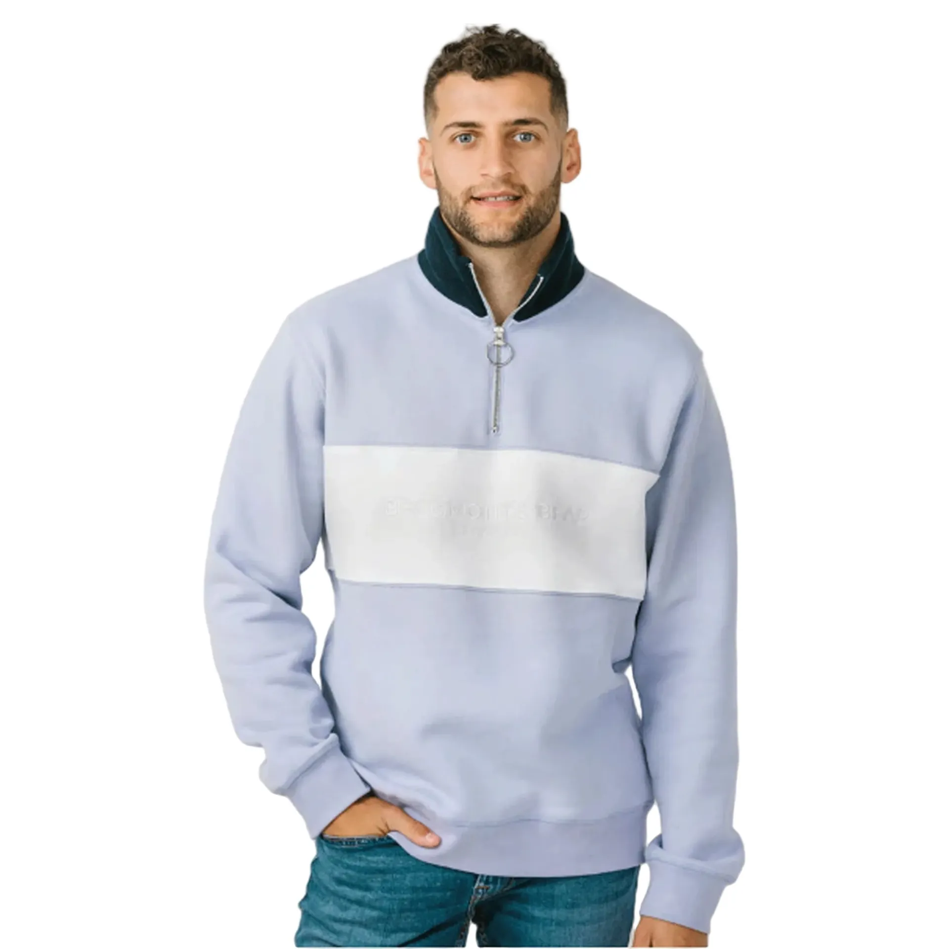 Unisex quarter zip colour block fashionable jumper
