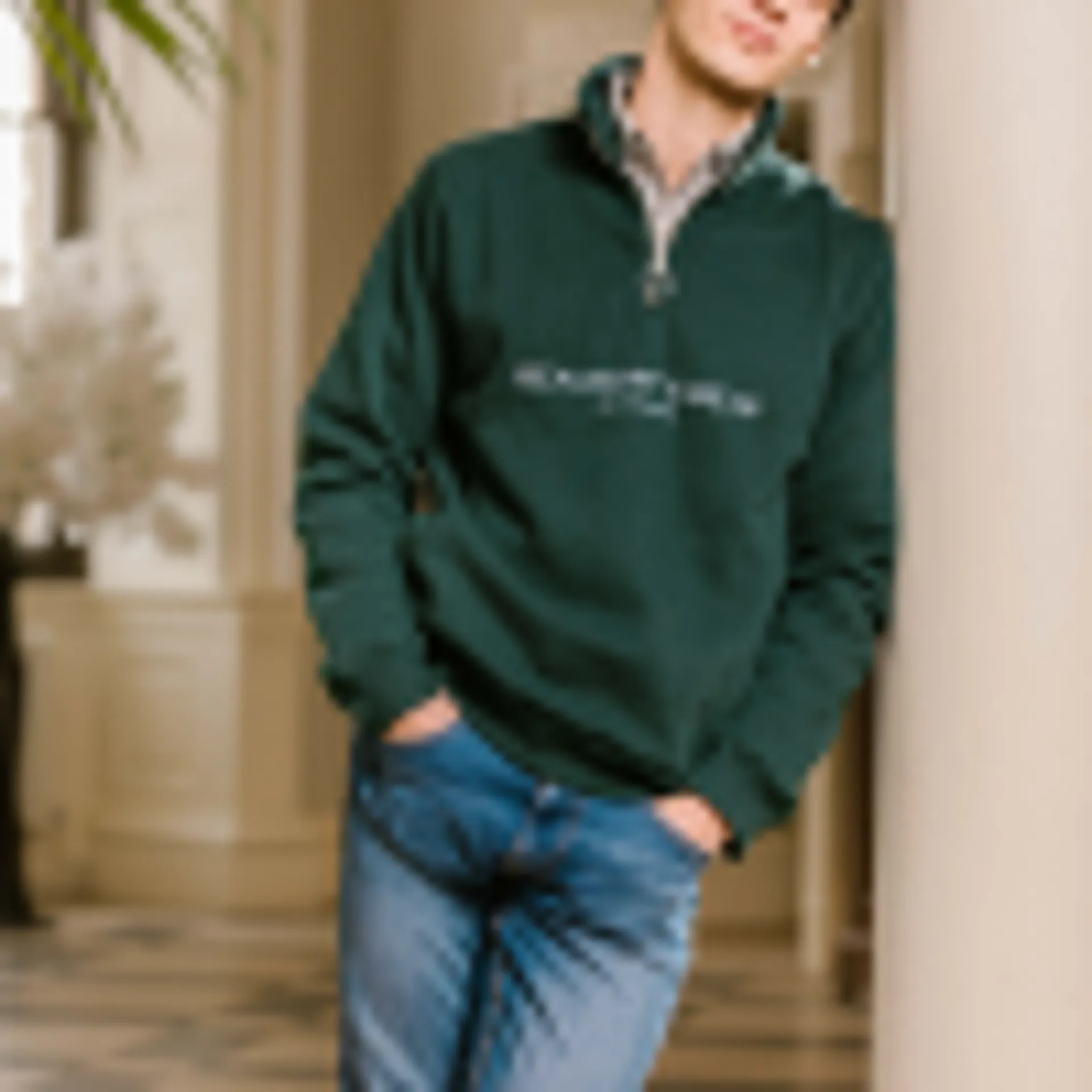 Casual and highly fashionable unisex quarter zip jumper