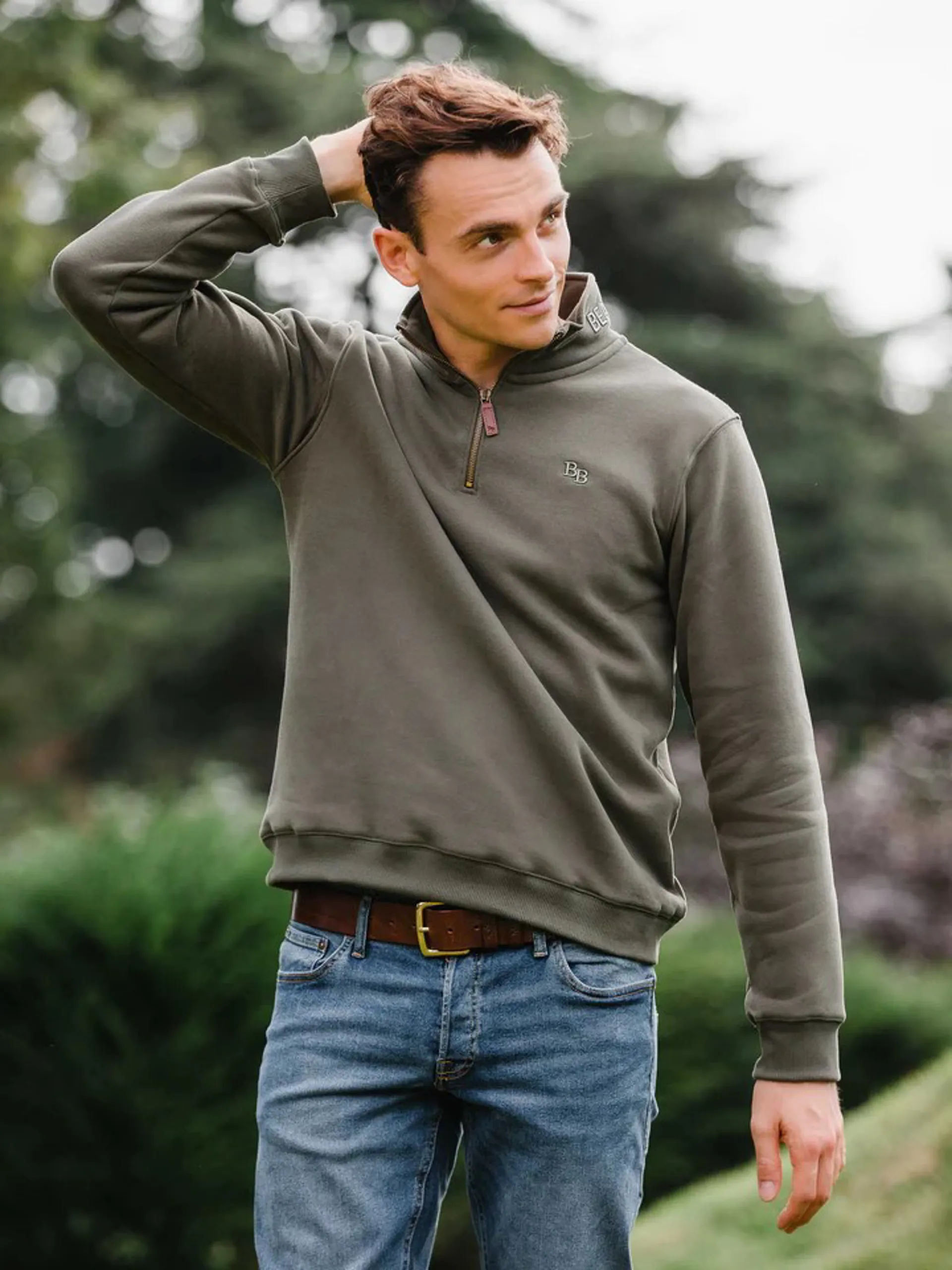 Beaumont and Bear Tuckenhay Unisex Quarter Zip Khaki