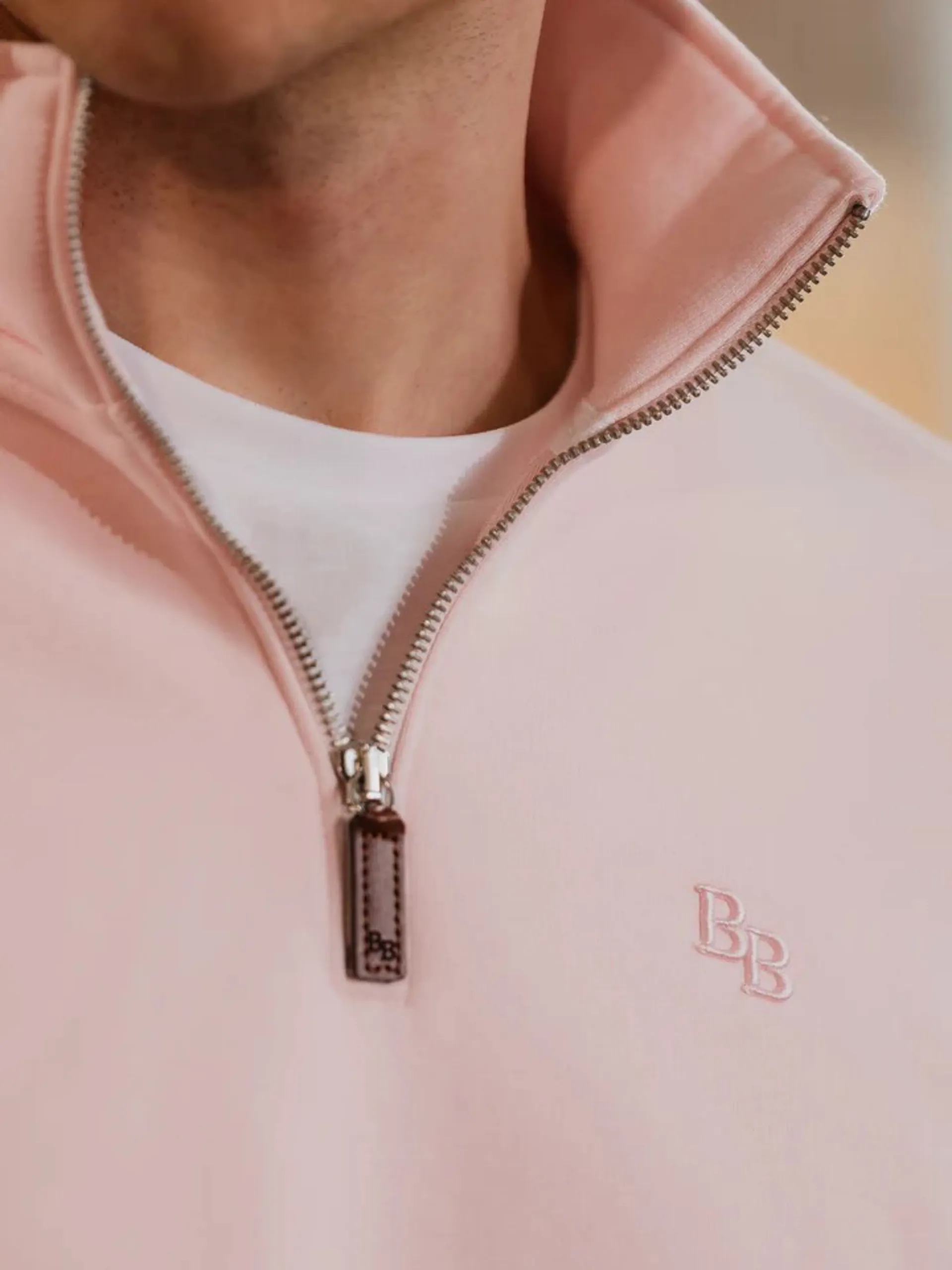 Beaumont and Bear Tuckenhay Unisex Quarter Zip Pastel Pink