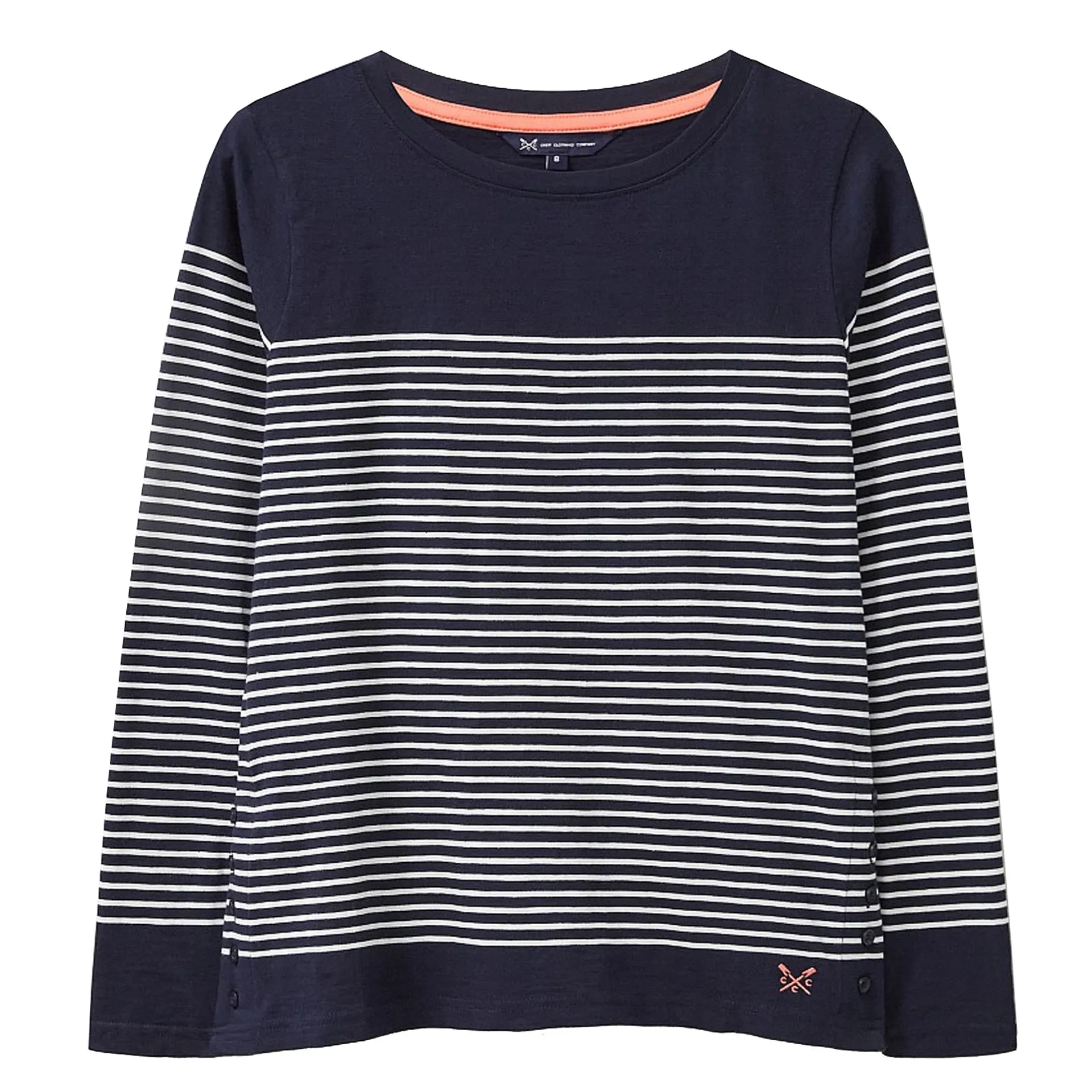 A popular everyday top the Cassandra from the Crew Collection is a perfect lightweight ladies long sleeved with button detail at the sides, and is finished with the usual Crew emblem of crossed oars.