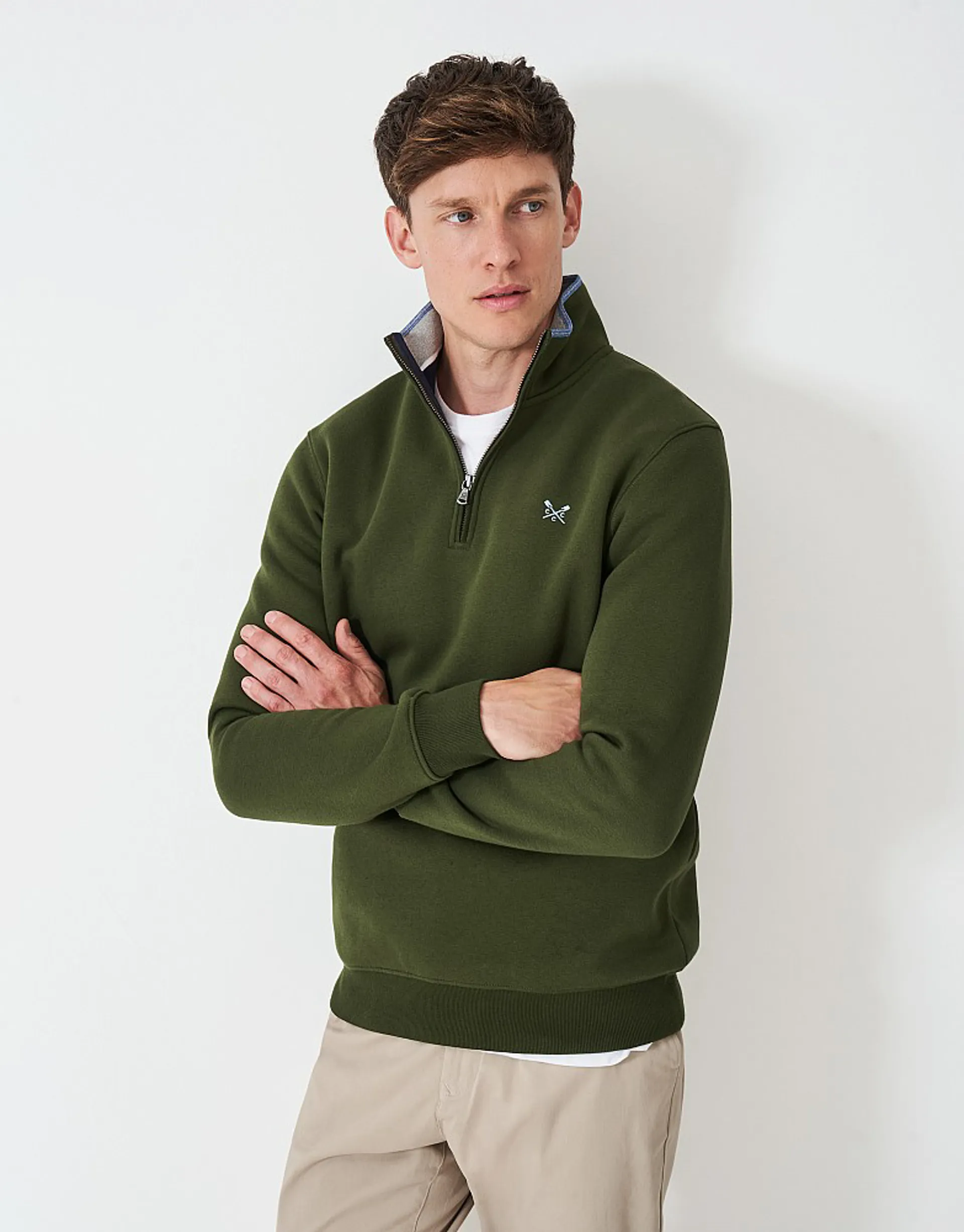 Question(s) answered about Crew Classic Half Zip Sweat Rifle Green