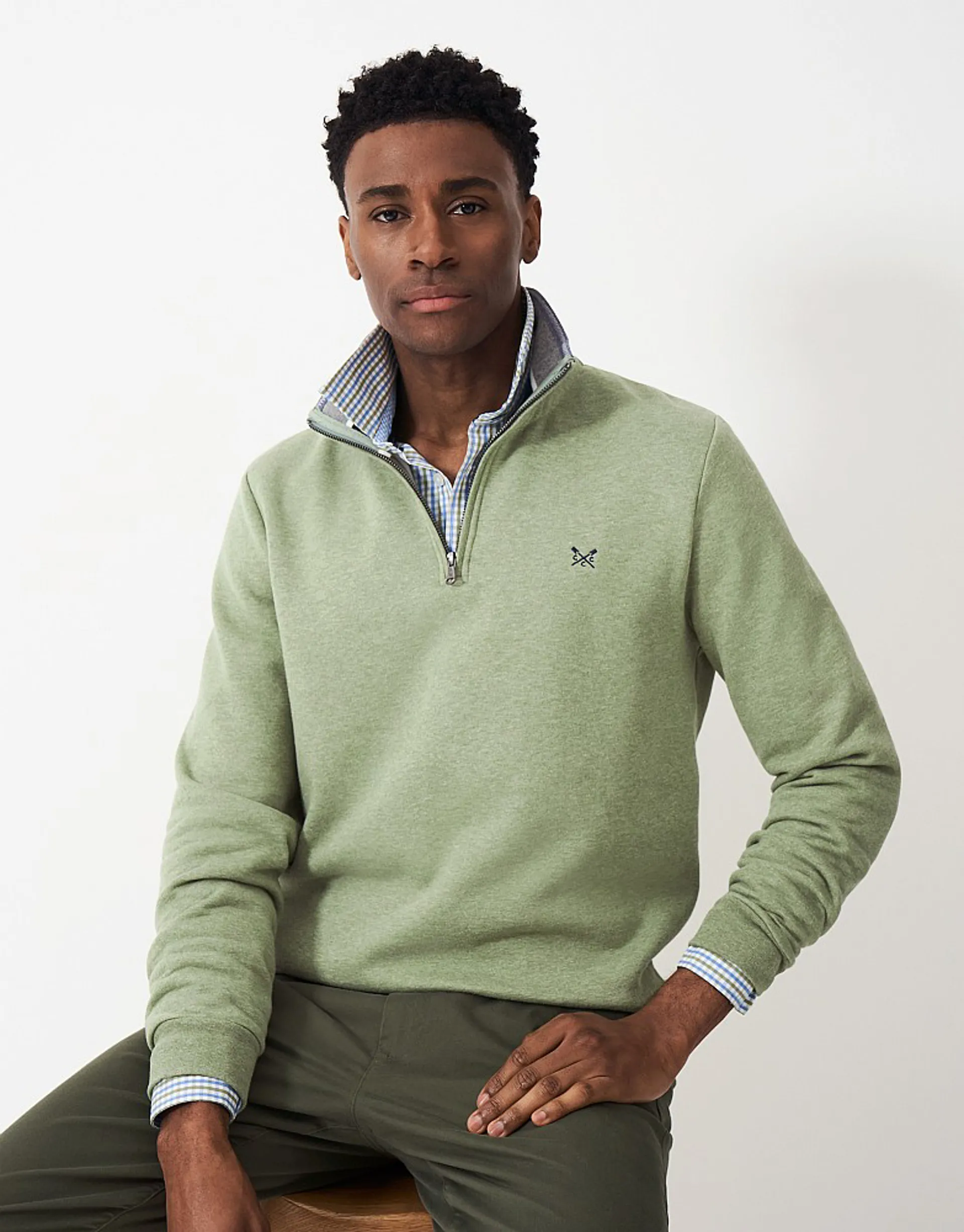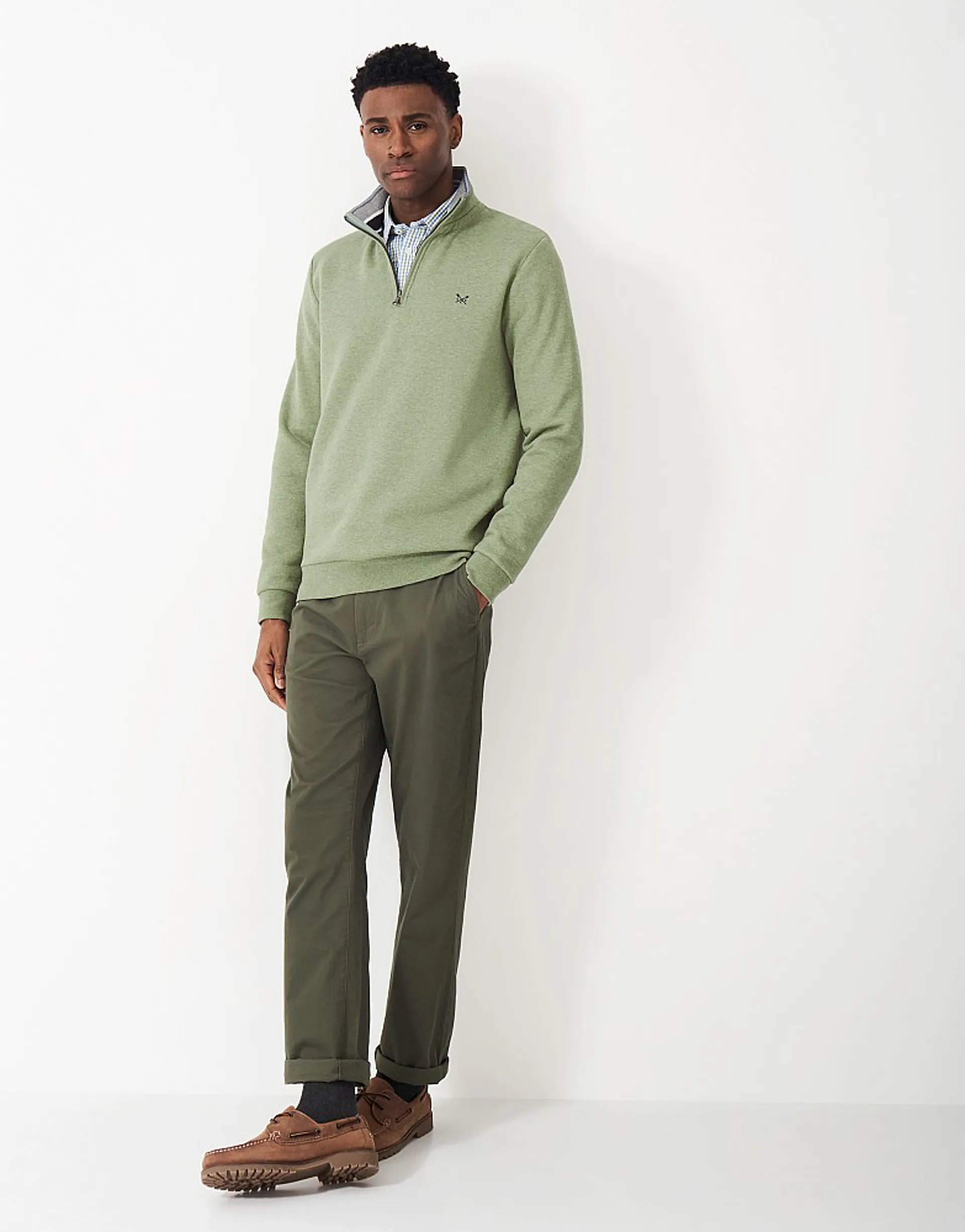 Crew's classic half zip sweatshirt is the perfect final layer. Supersoft with a comfortable shape that goes just as well with your smarter chinos as it does with your jeans. For the week and the weekend.