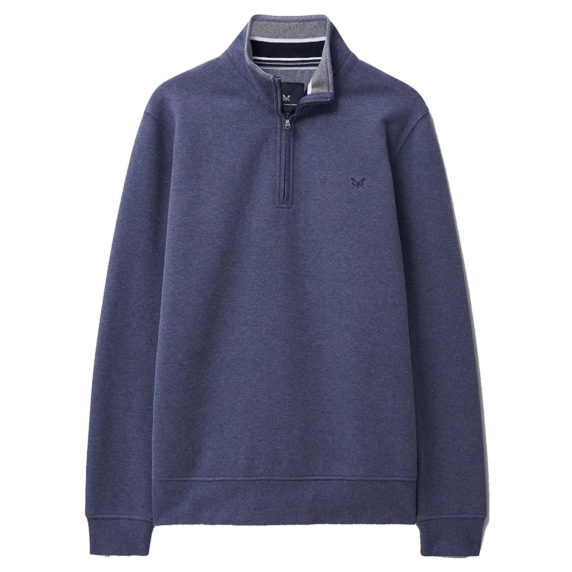 Crew classic half zip sweat in steel blue marl is the perfect final layer. Supersoft with a fitted shape that goes just as well with your smarter chinos as it does with your jeans. For the week and the weekend.
