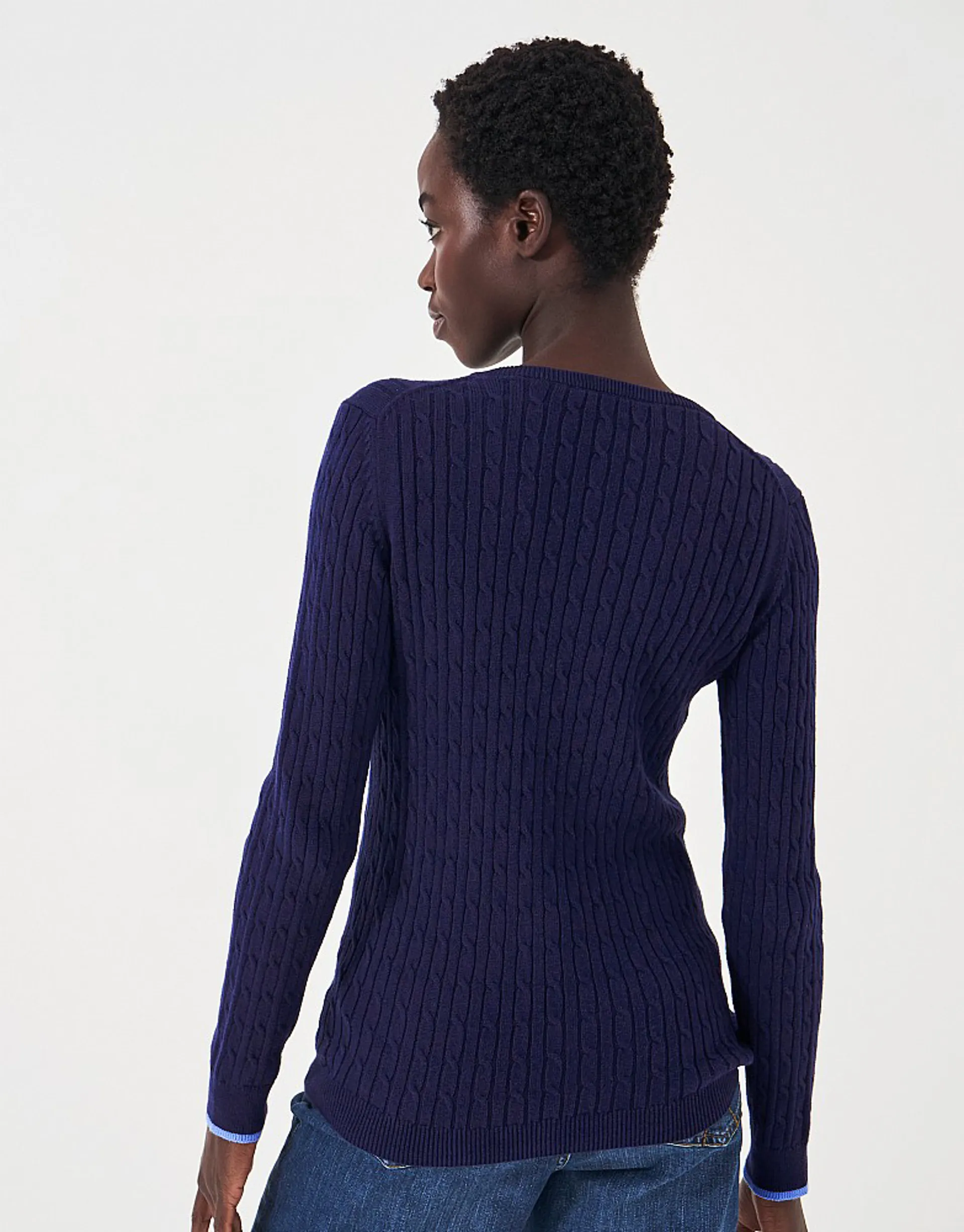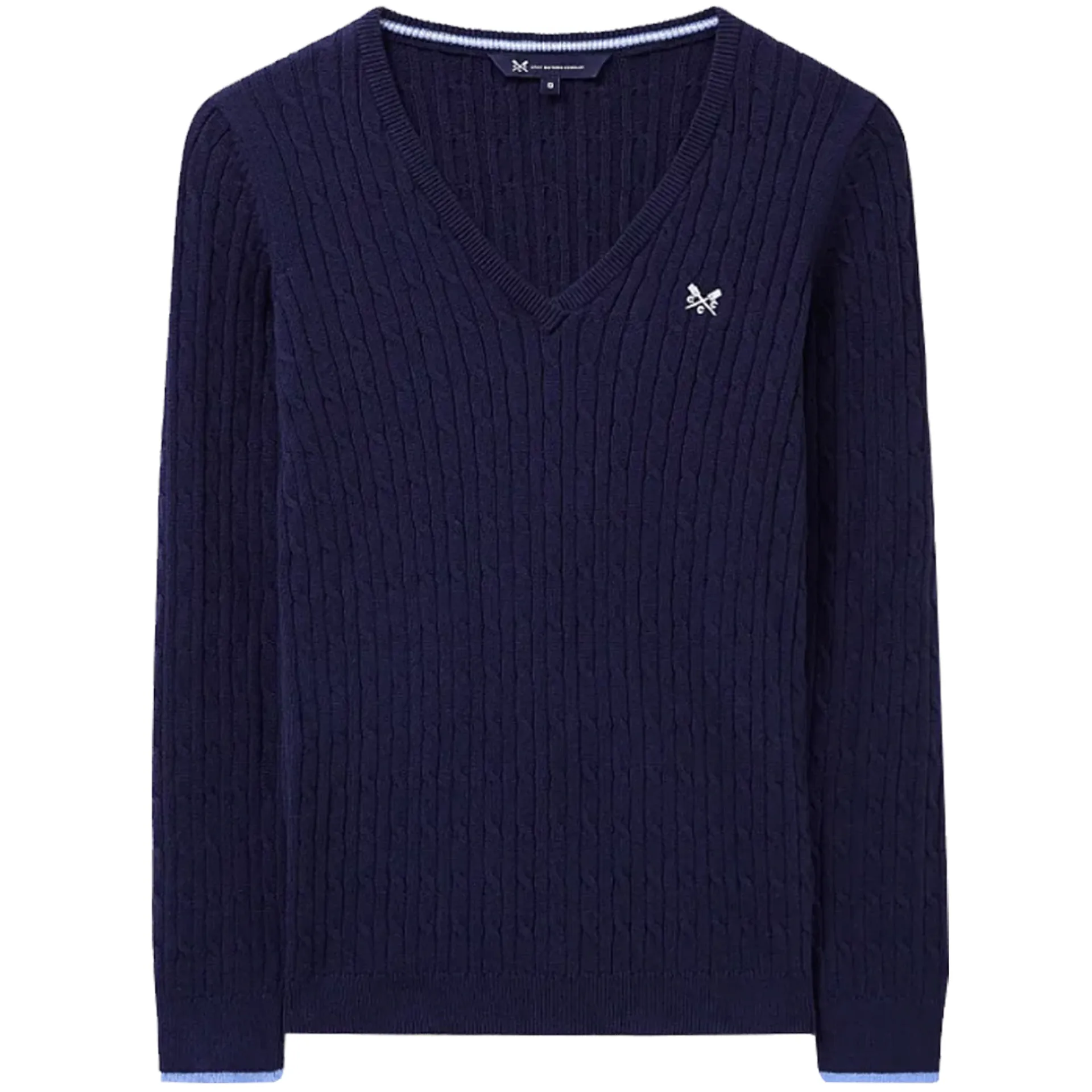 Crew Clothing Heritage V Neck Cable Jumper Navy