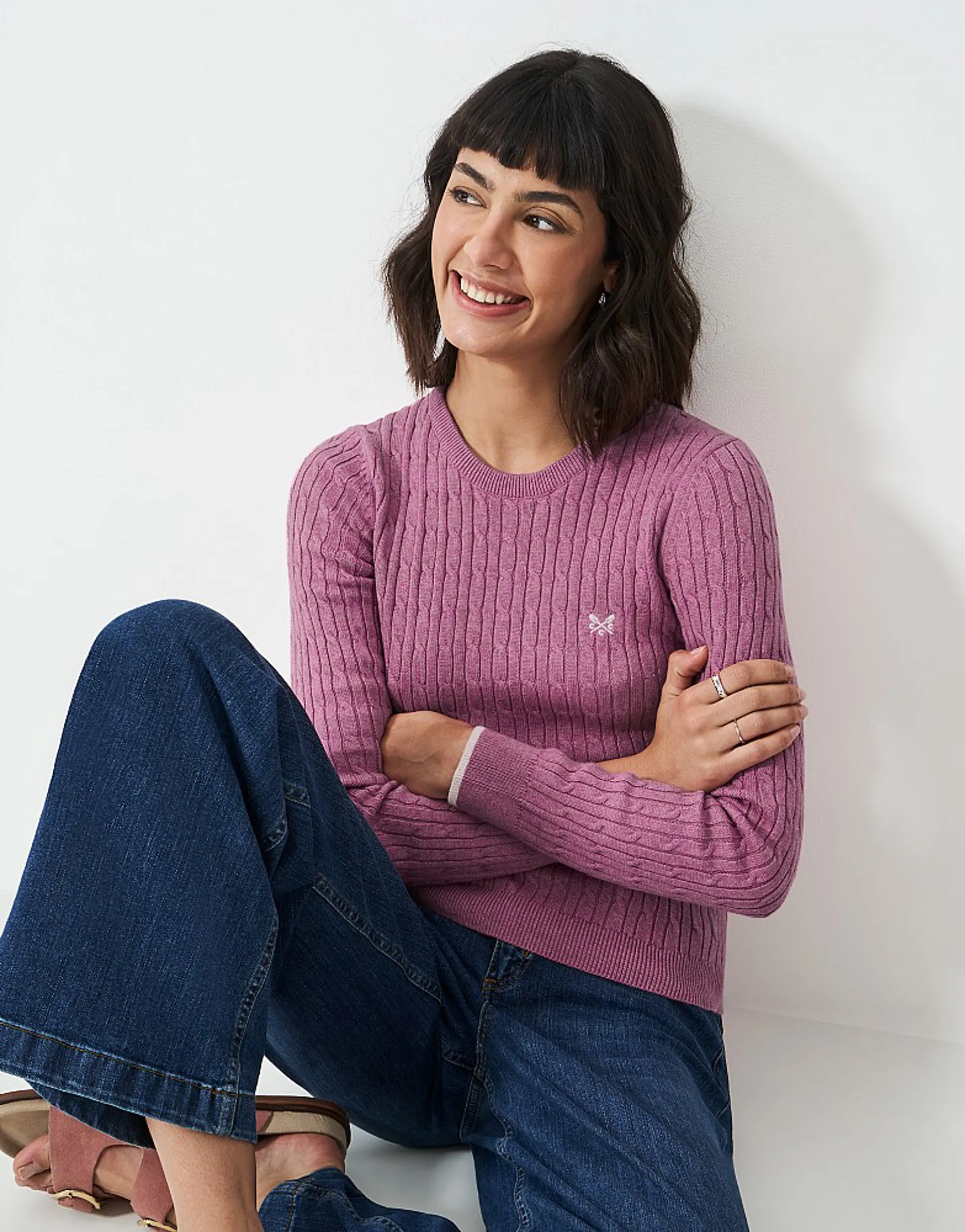 Question(s) asked regarding Crew Heritage Crew Neck Cable Knit Jumper Decco Marl
