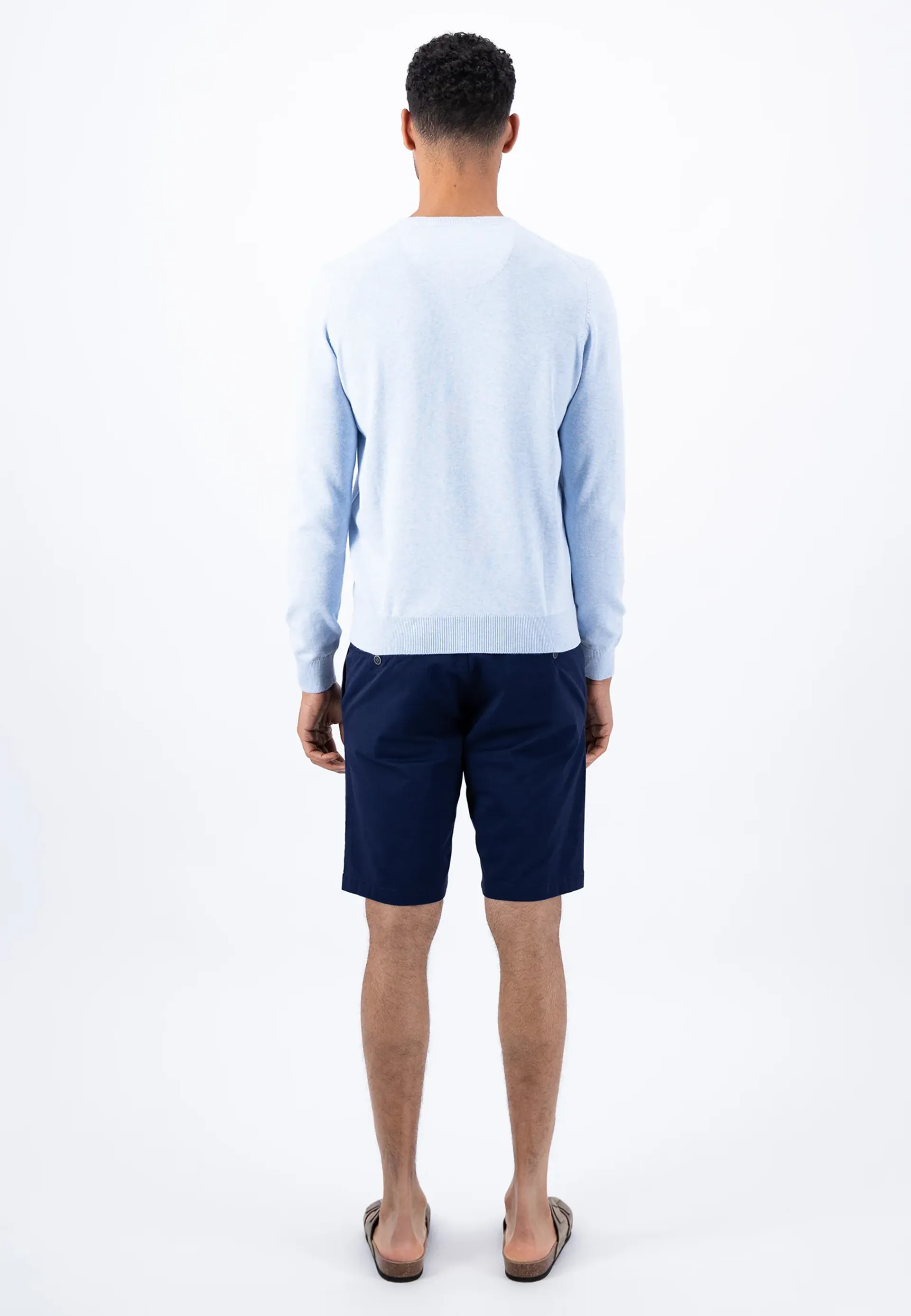 A soft fine knitted jumper, super comfortable with stylish look, features o-neckline, rib cuffs on sleeves and hem with small logo embroidery. The ideal layer, wear over a shirt or tshirt, or under a jacket. The perfect addition to a male wardrobe.