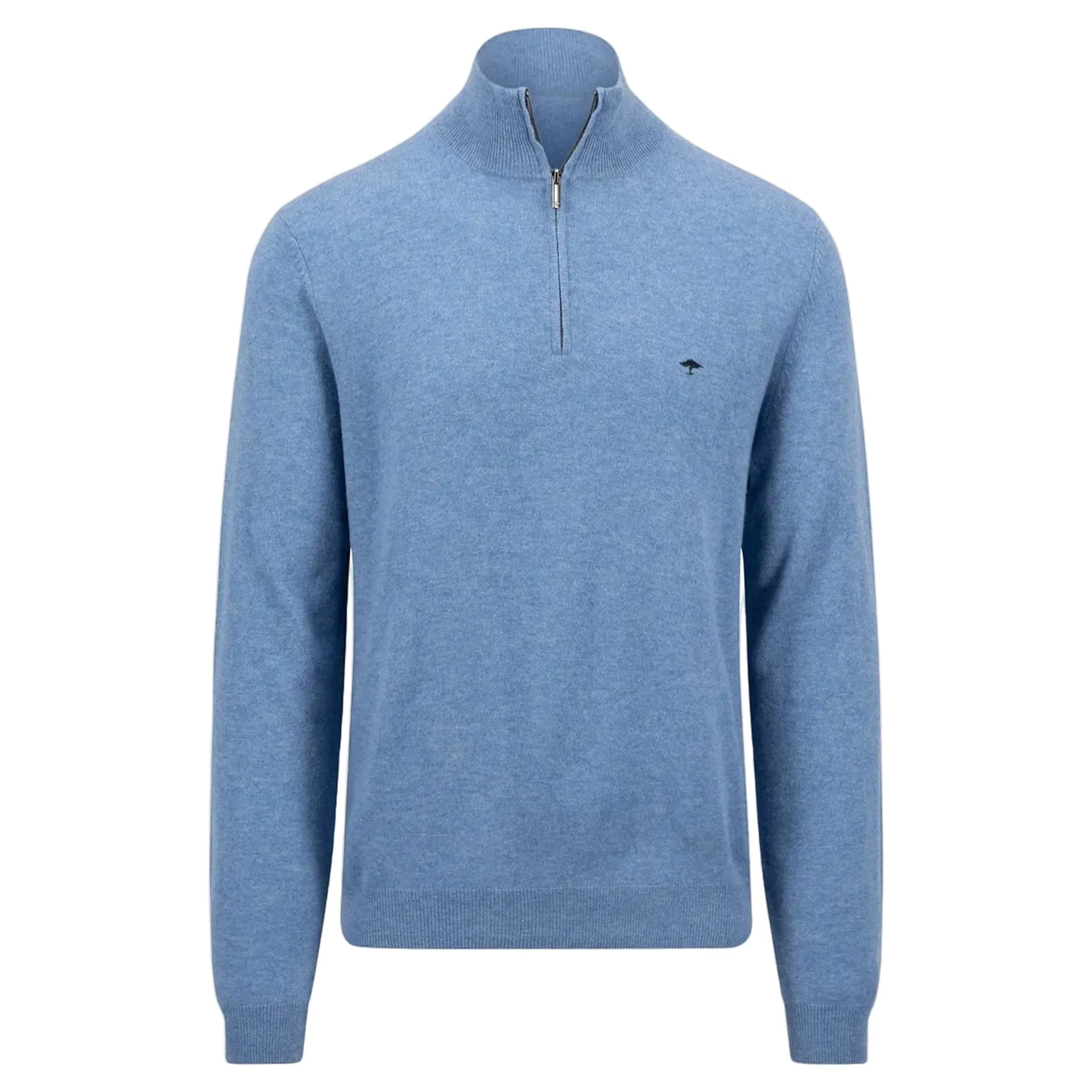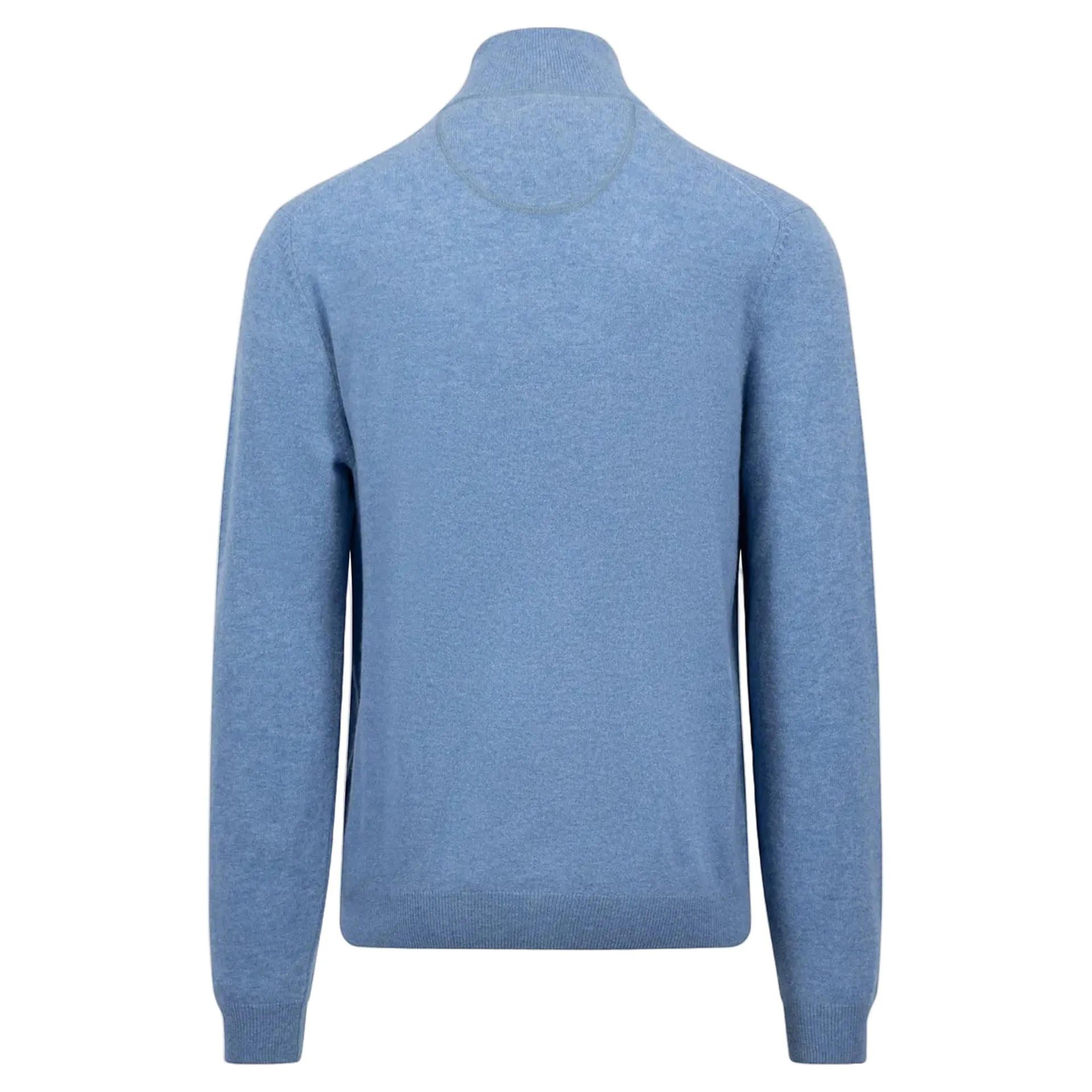 Fynch Hatton Quarter Zip Merino Cashmere Knit Cloud Blue