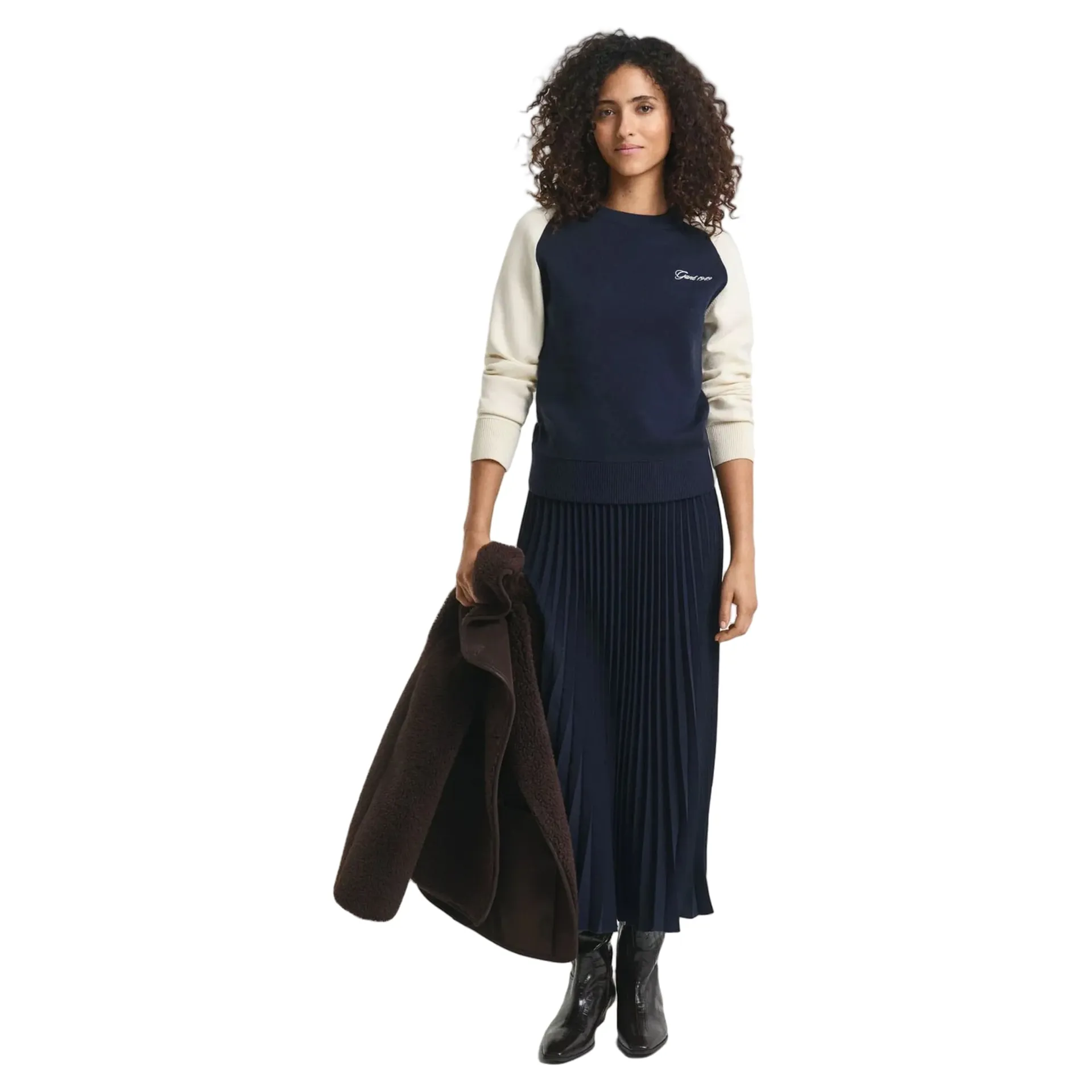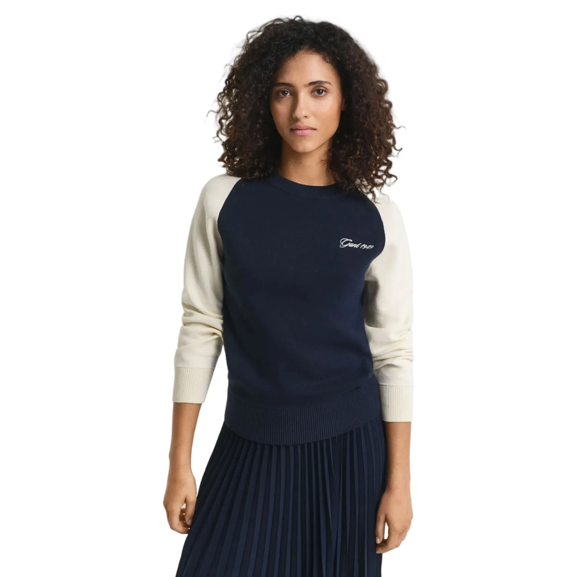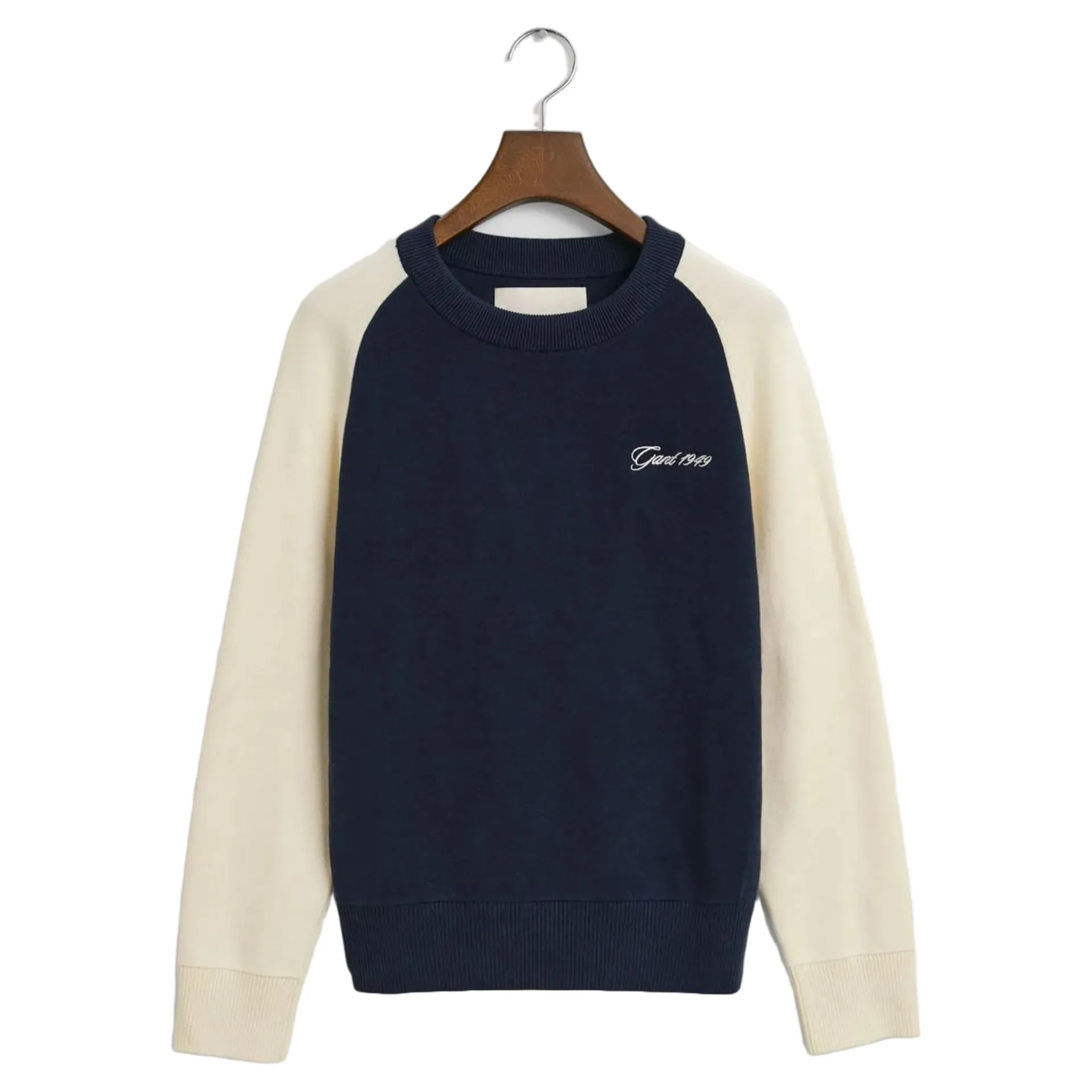 Cut for a regular fit, it features long, raglan sleeves, a classic crew neck, and a colour block design at the neck and body. This sweater is complete with rib detailing and a Gant 1949 script graphic embroidered at the chest.