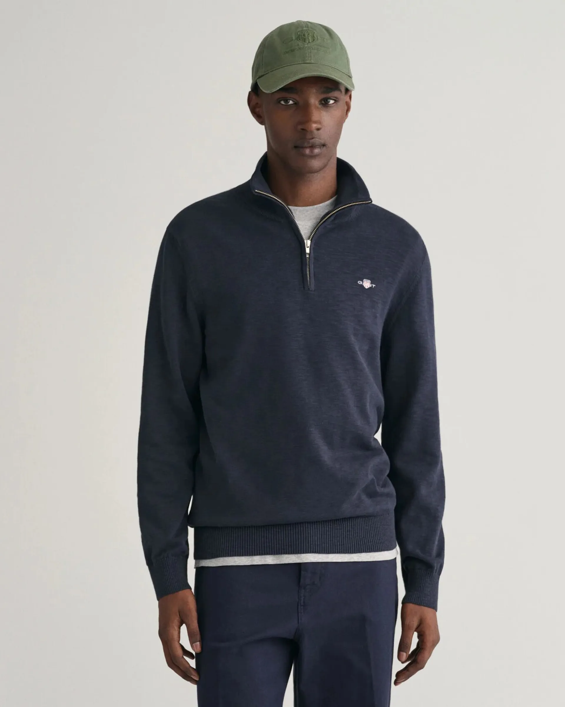 Crafted from cotton with a special slub-textured effect, this half-zip sweater seamlessly takes you from work to dinner. Cut for a regular fit, it features ribbed detailing at the hem and sleeve cuffs and a GANT logo embroidered at the chest.