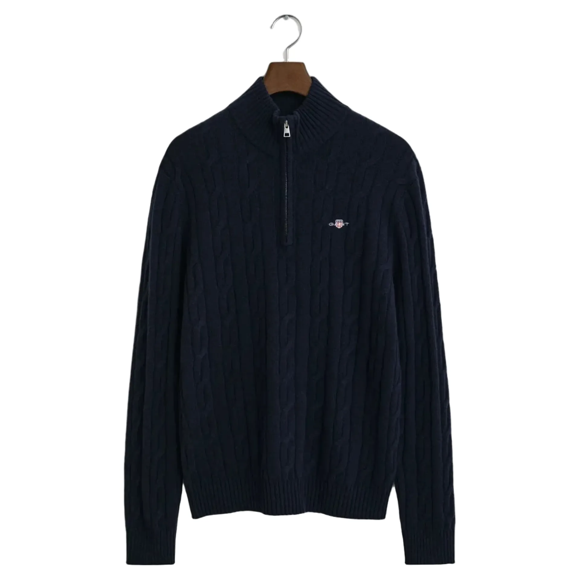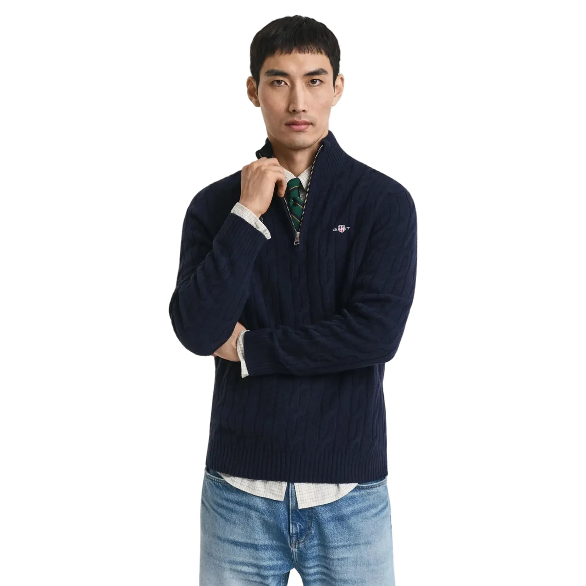 Gant Lambswool Cable Knit Half-Zip Sweater in Evening Blue