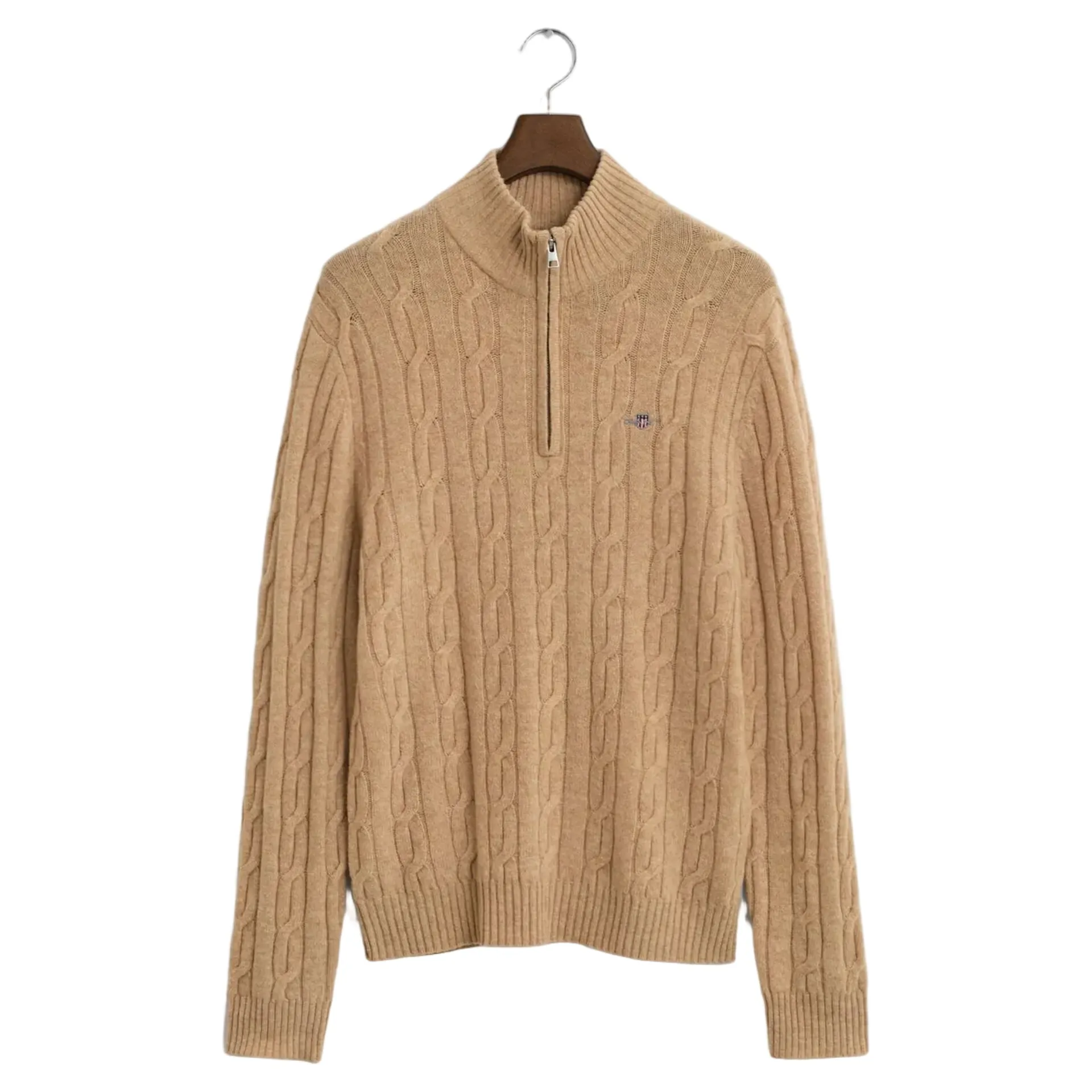 Question(s) asked regarding Gant Lambswool Cable Knit Half-Zip Sweater in Khaki Melange