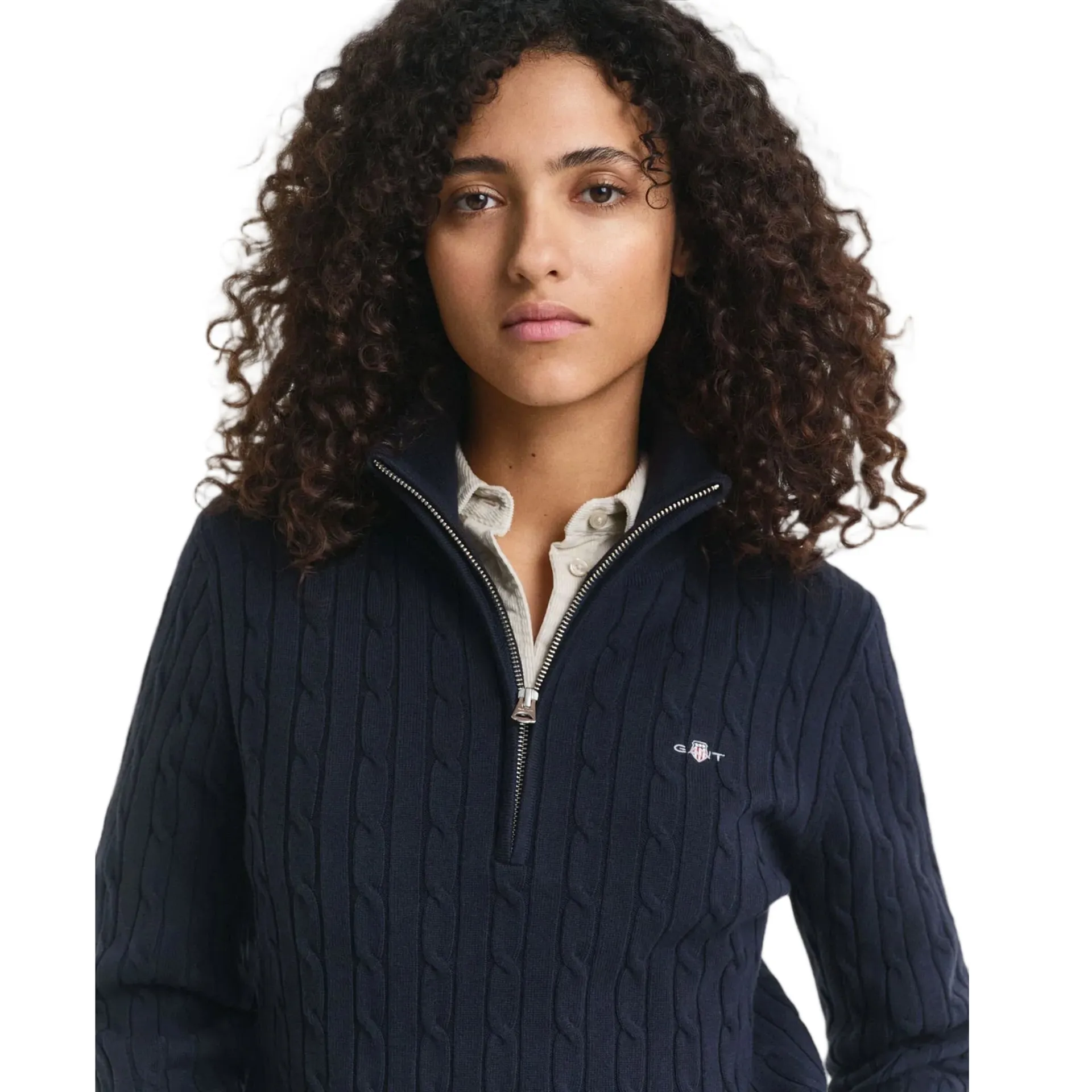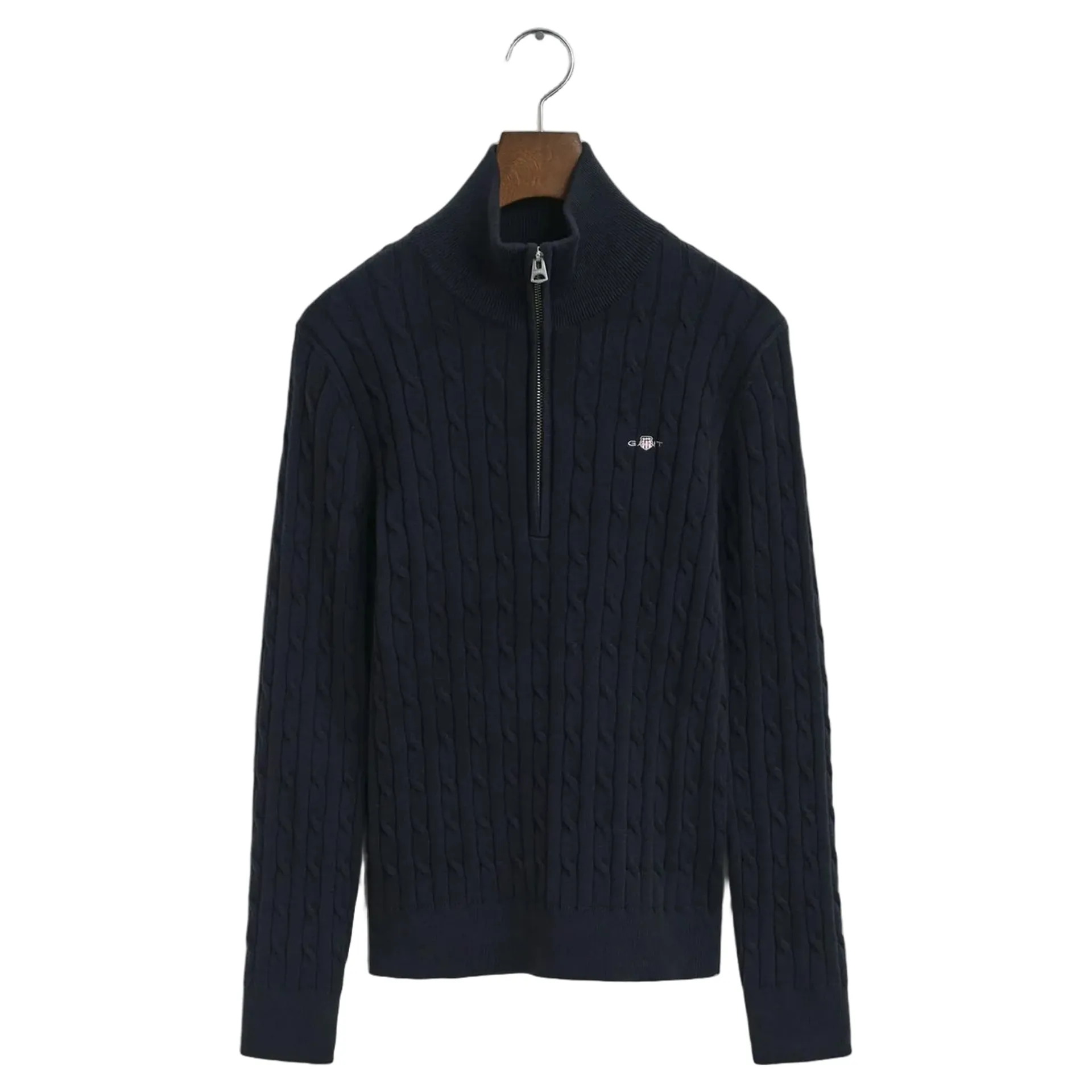 Gant Stretch Cotton Cable Half Zip in Evening Blue