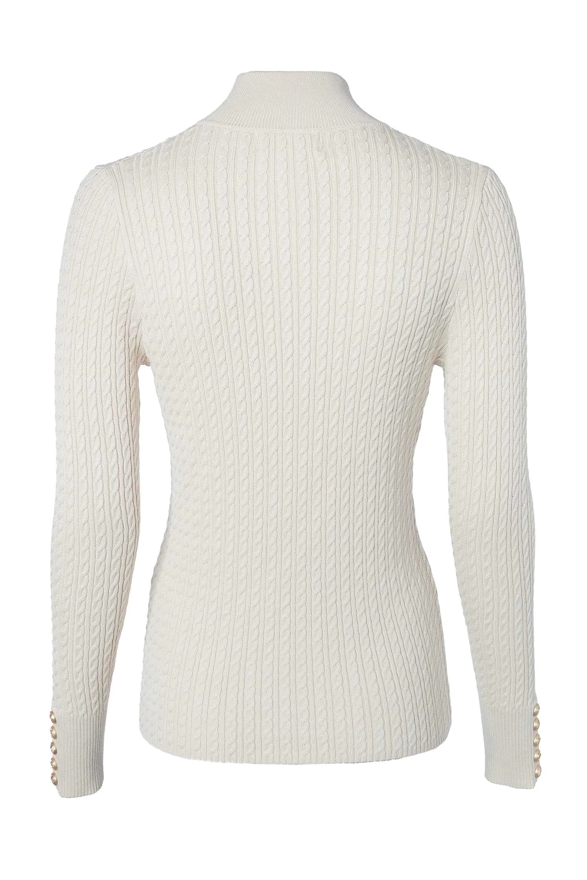 Crafted from a luxurious supersoft yarn, this jumper ensures a cosy feel against your skin. With an intricate cable design and a slim silhouette, the monogrammed henley zip offers versatility in styling. Beautifully elevated with gold hardware on the cuffs.