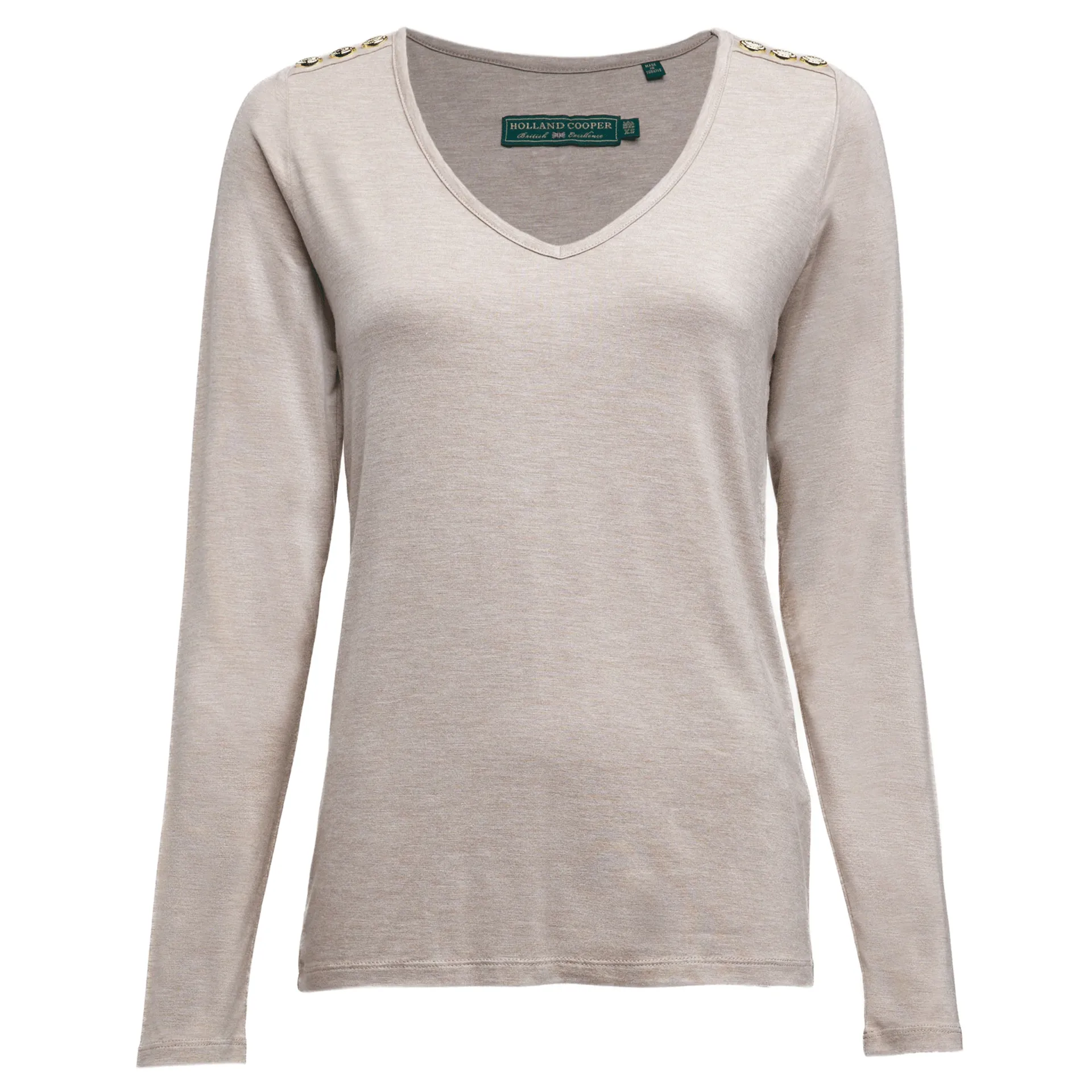 Holland Cooper Long Sleeve Vee Neck Tee Oatmeal