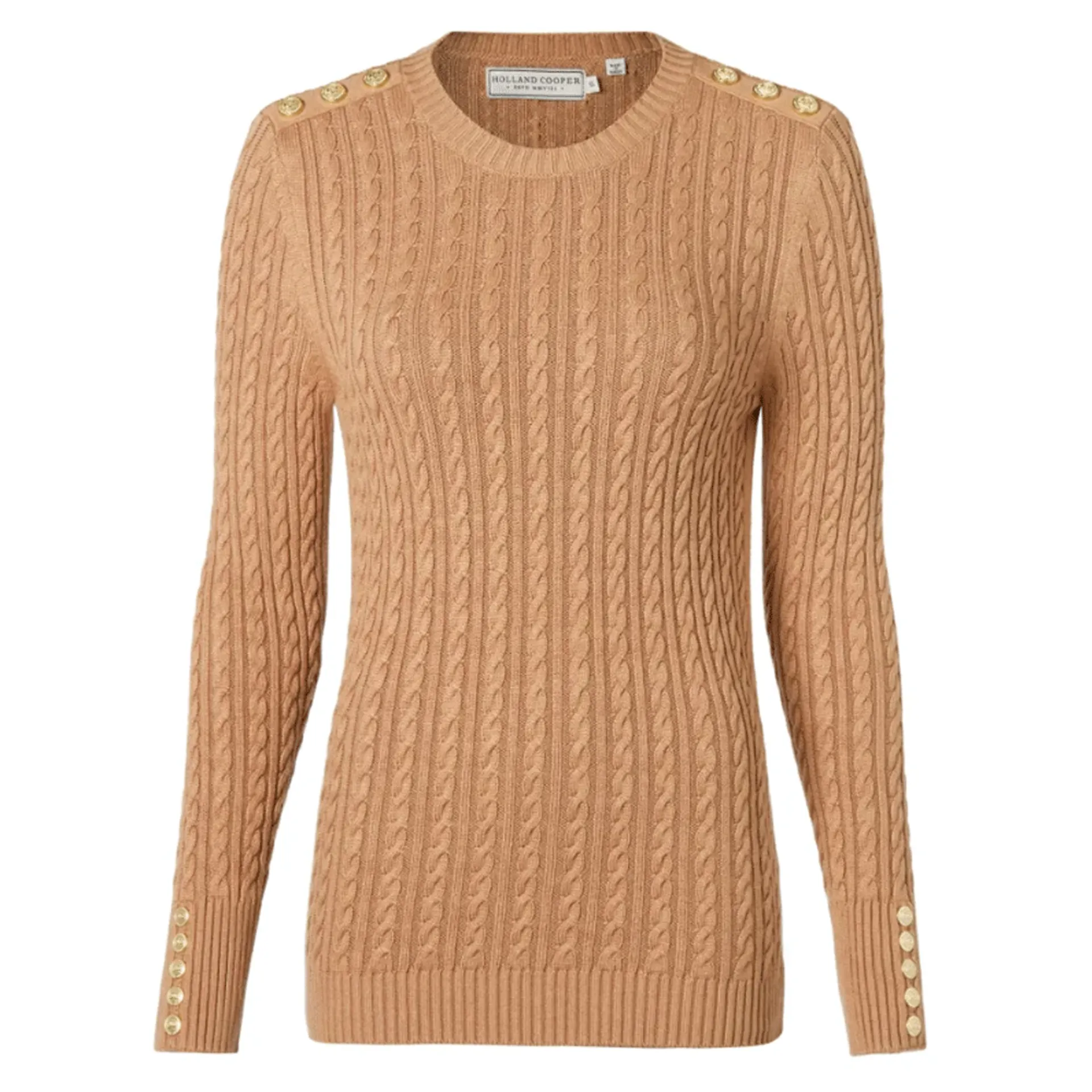 Holland Cooper Seattle Cable Crew Knit Dark Camel Marl