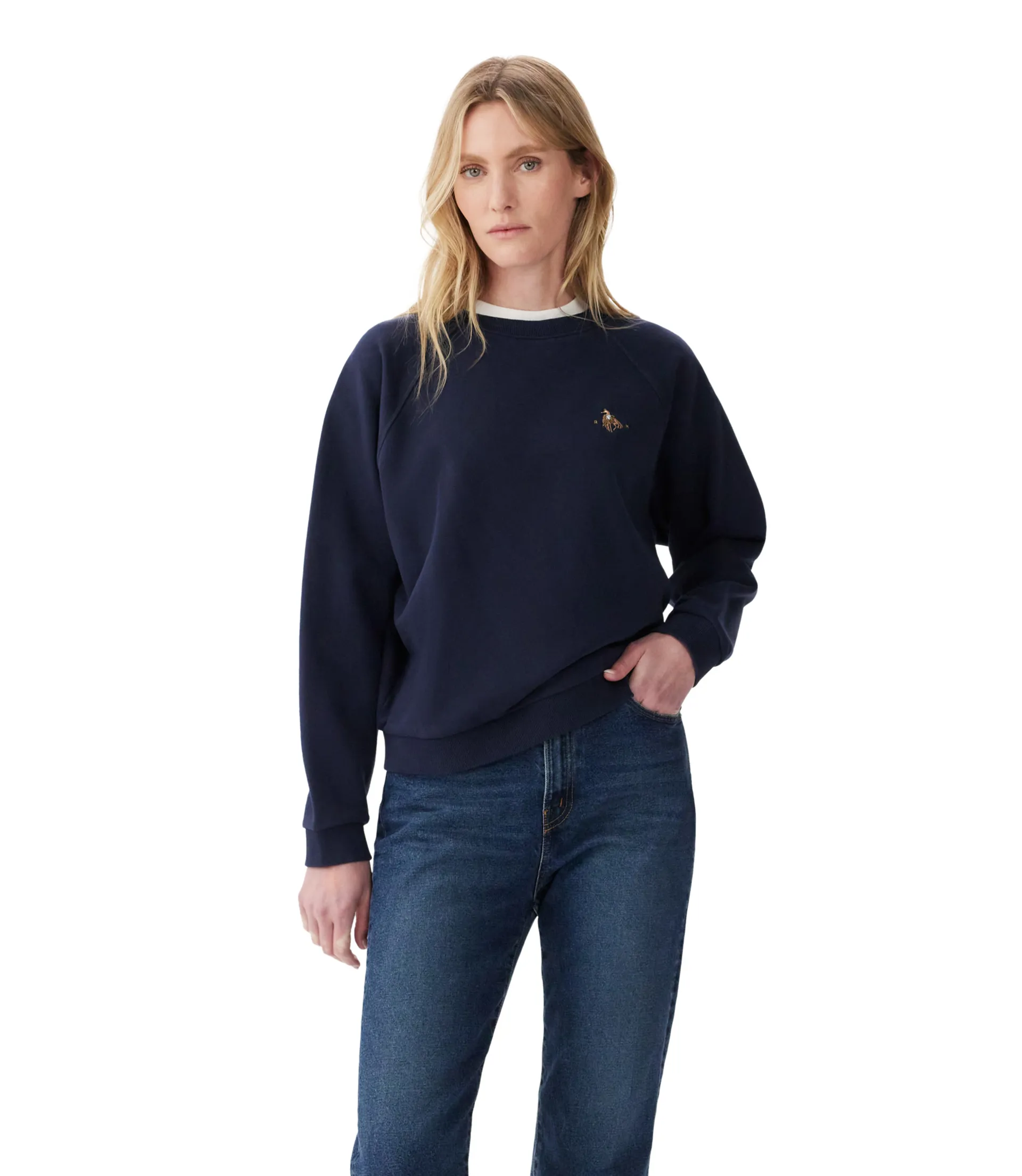 Relaxed fit crew neck jumper with rodeo rider embroidered on chest