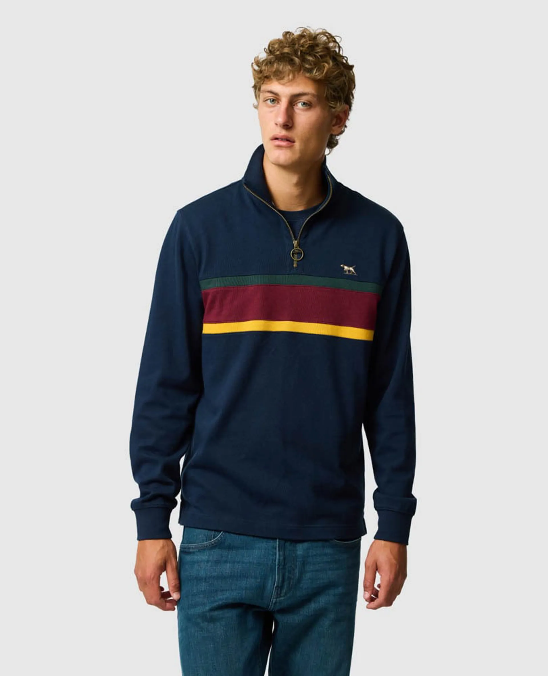 The tightly knit rugby fabric structure resists pilling while maintaining a naturally breathable hand-feel. Cut in Rodd & Gunn's iconic 1/4 zip style with contrast chest stripes and sportswear detailing, it is a versatile layer designed for everyday wear with the quiet confidence of real sports provenance.