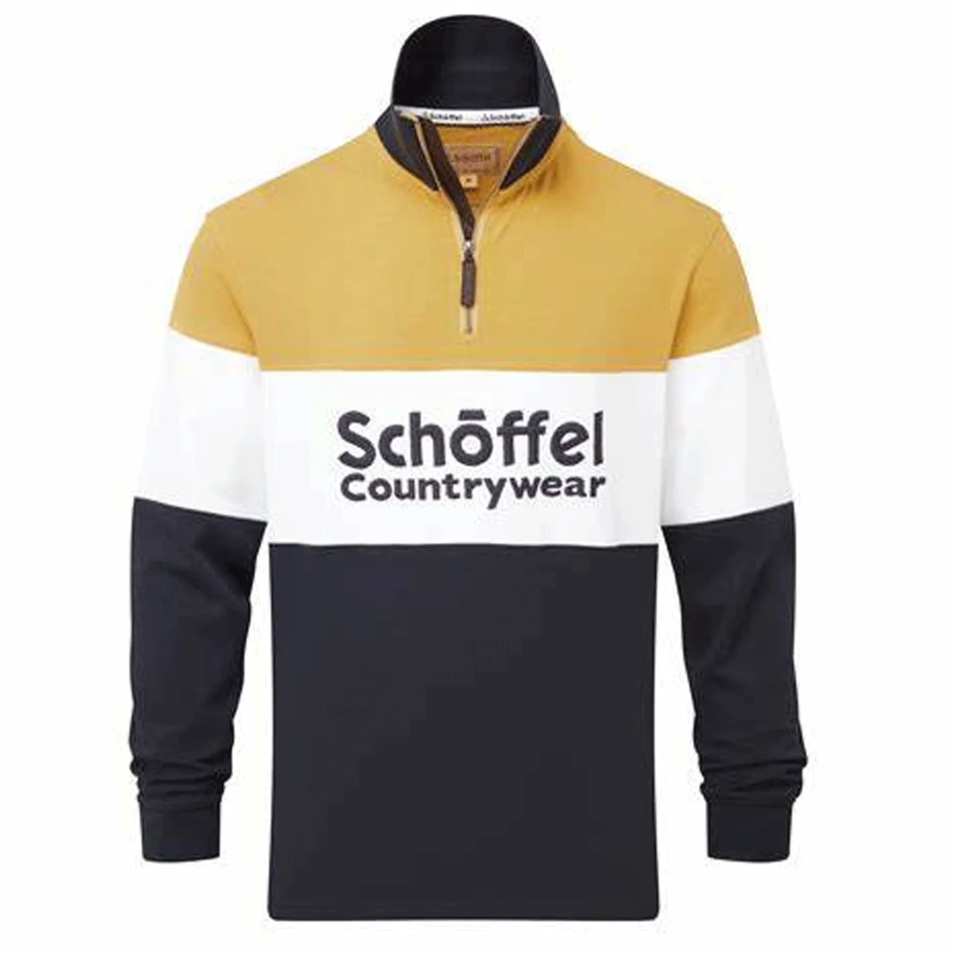Exeter unisex rugby styled jumper, with a quarter zip. This relaxed fit long sleeved cotton jersey top, is the ideal casual piece to match with jeans. A popular styled jumper from the schoffel stable.