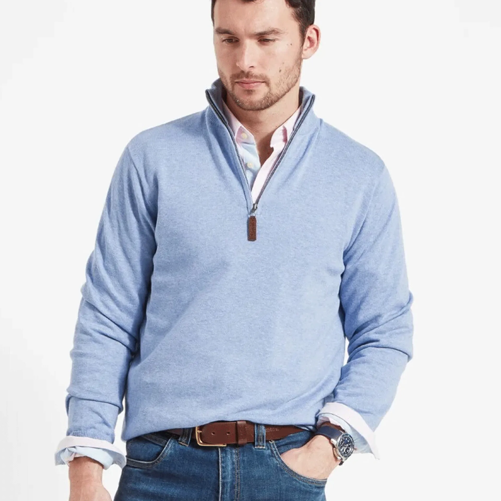 Question(s) answered about Schoffel Porthmeor Pima Cotton Quarter Zip Jumper Sky Blue
