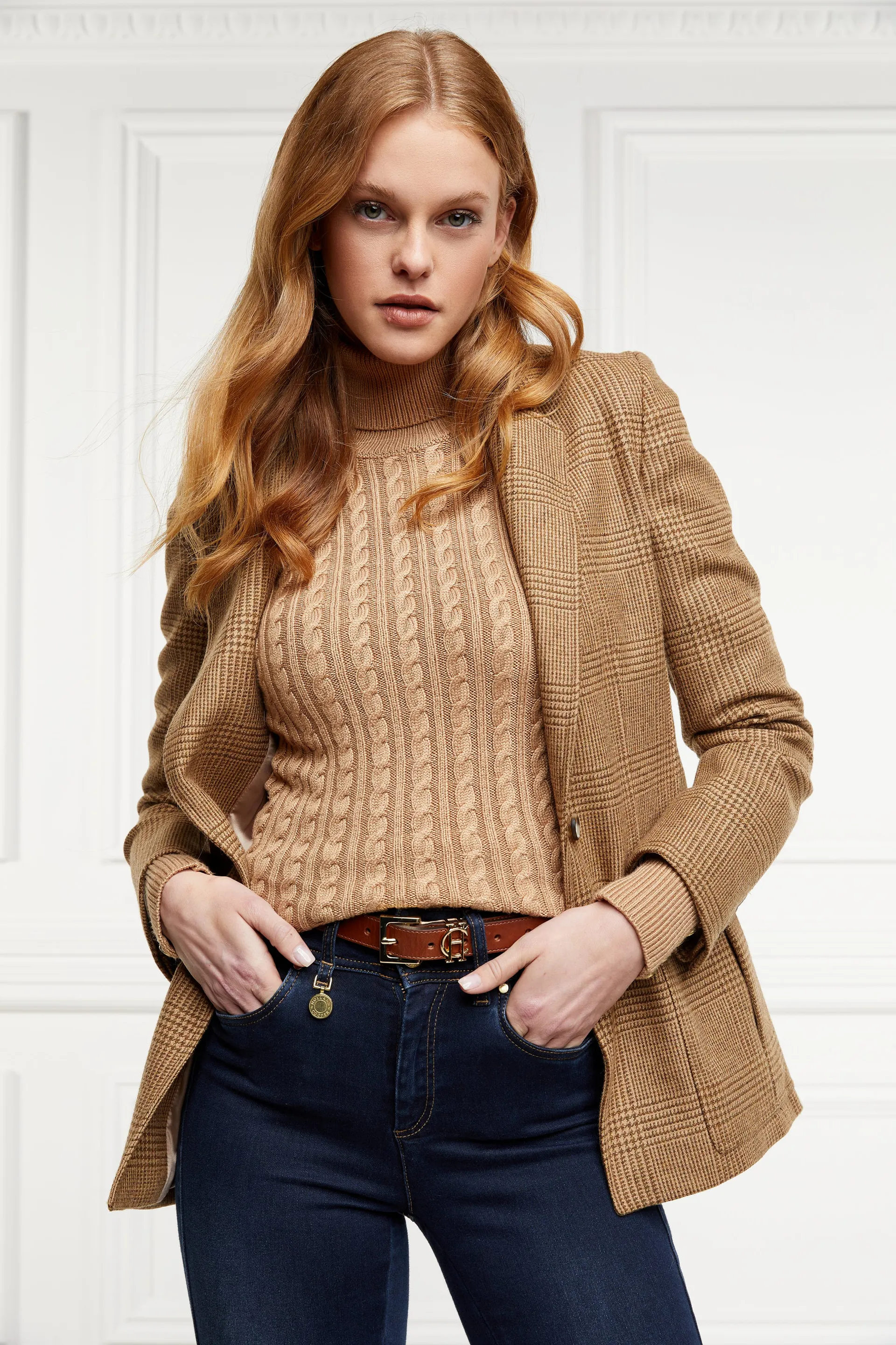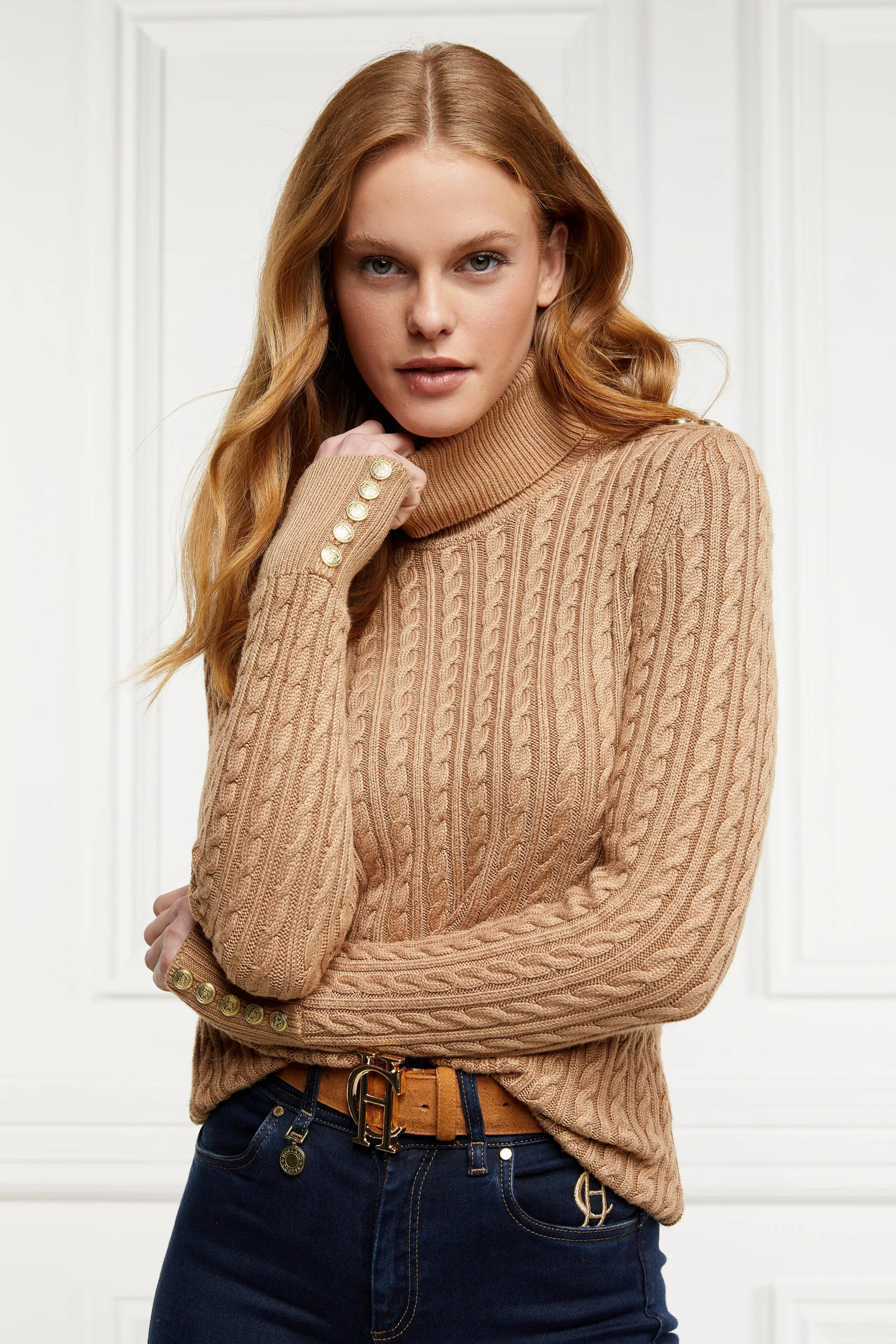 Seattle Roll Neck Cable Knit Dark Camel Marl
