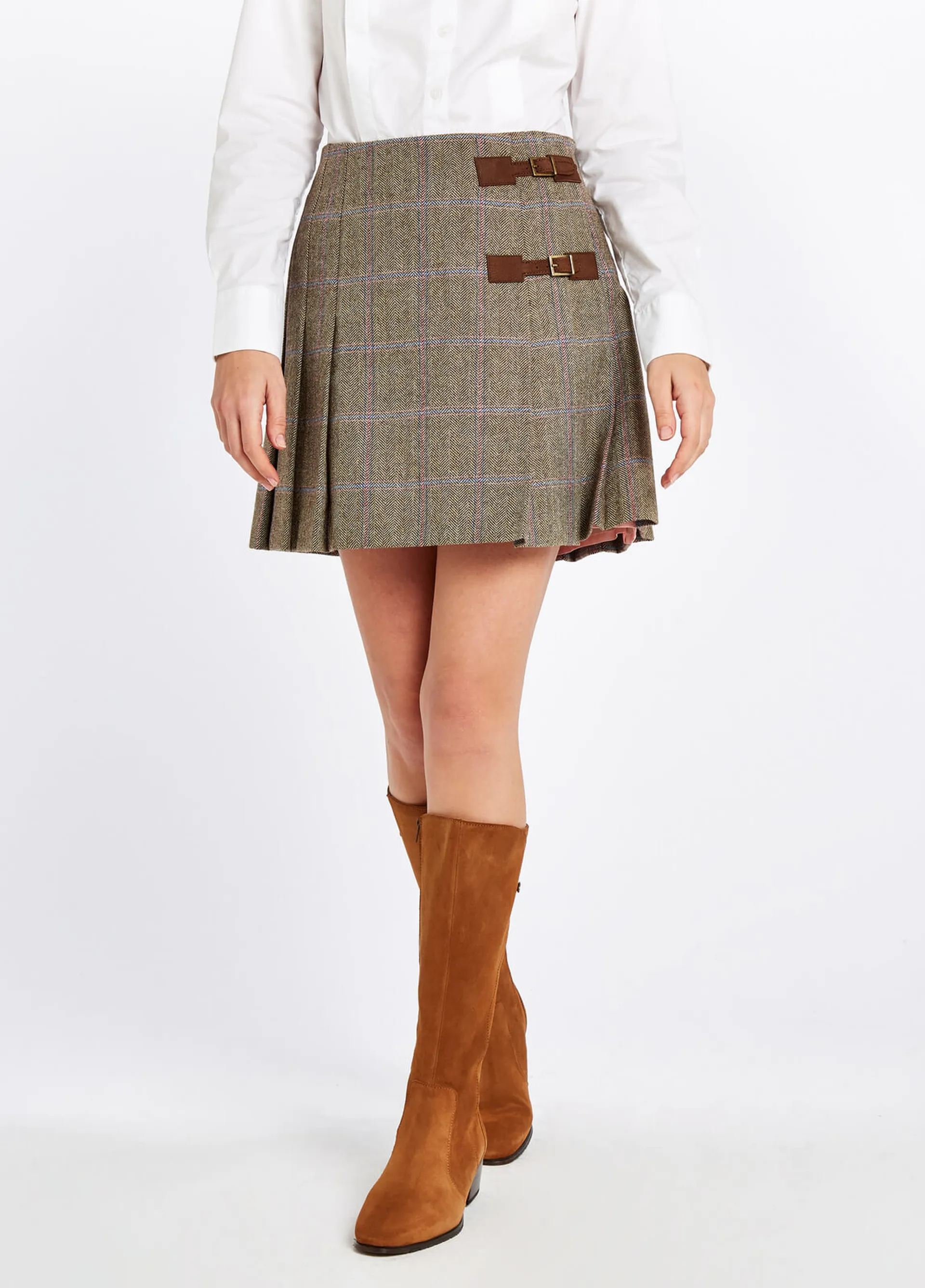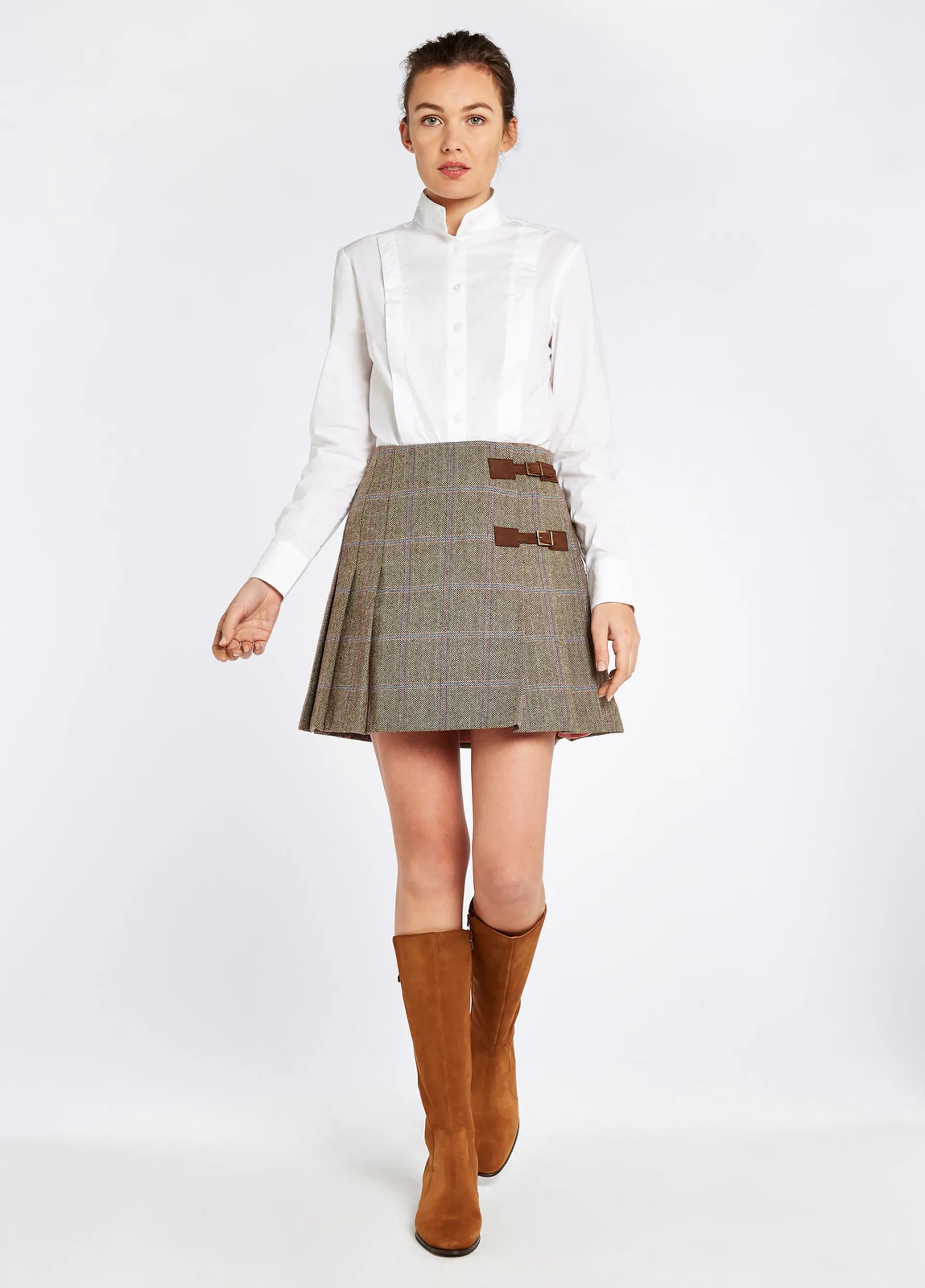 A country classic with a contemporary twist, the Blossom tweed skirt offers great versatility. Team the short, pleated skirt with a polo and light knit for a relaxed preppy style or a Dubarry Chamomile tailored shirt and Poncho for a stunning race day outfit. Styles perfectly with a Dubarry Downpatrick boot.