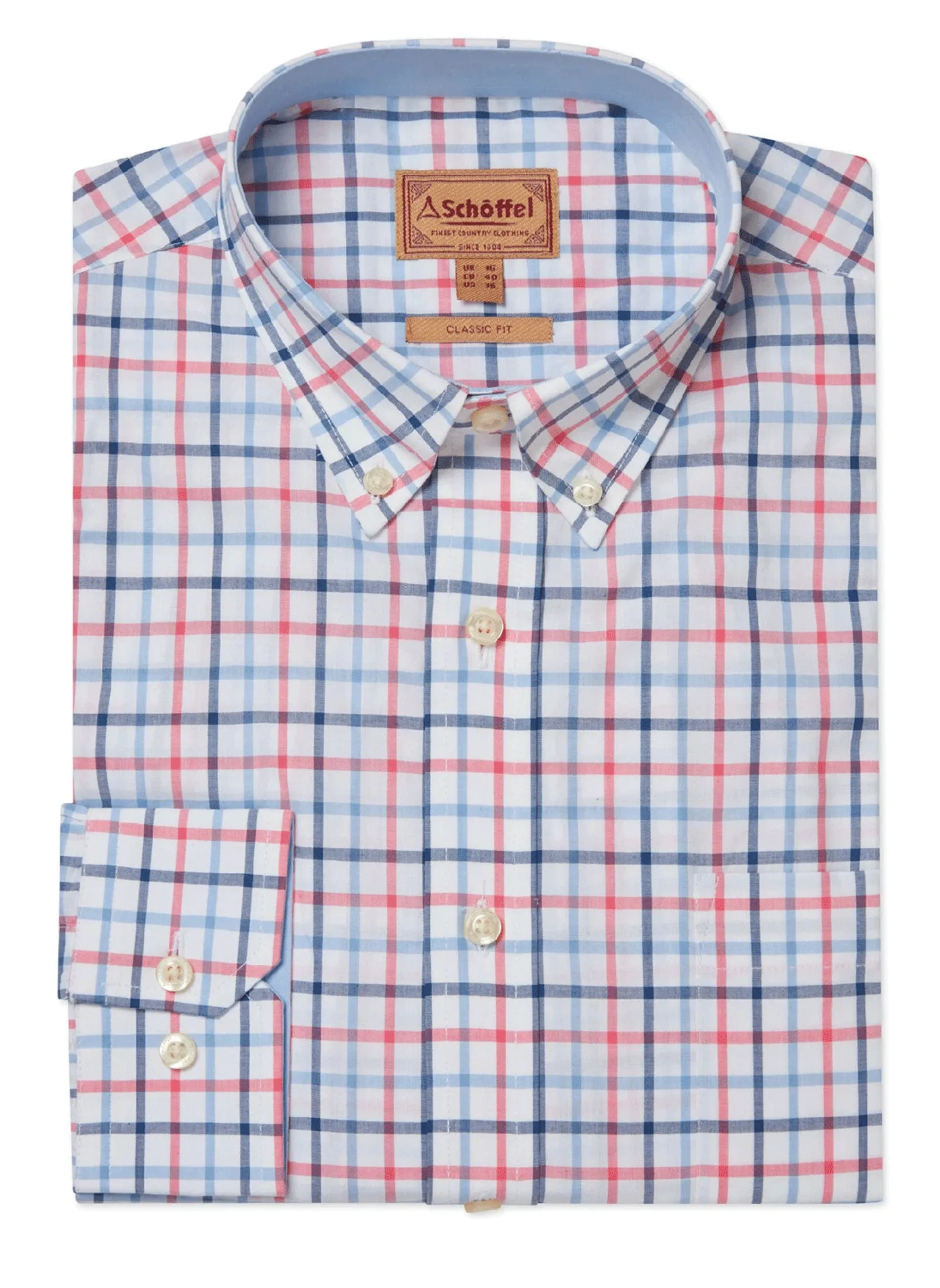 Question(s) answered about Schoffel Holkham Classic Shirt French Navy/Sky Blue/Sun Coral
