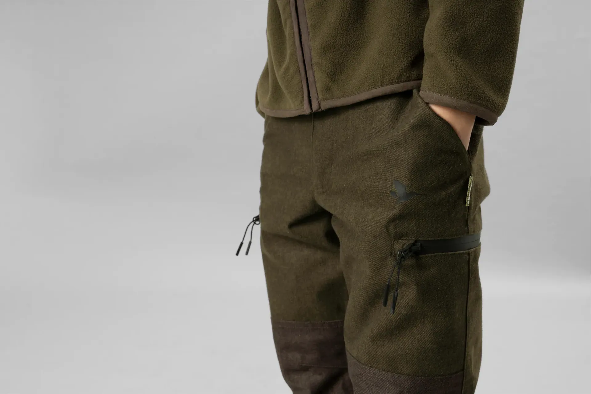 The Seeland Avail Junior Trousers in Pine Green Melange are versatile and durable trousers for children, perfect for outdoor adventures. Crafted from weather-resistant, robust fabric with reinforced knees and an adjustable waist, they provide comfort, flexibility, and protection. Ideal for country walks, school, or play, these trousers combine Seeland’s quality craftsmanship and functional design for junior explorers.