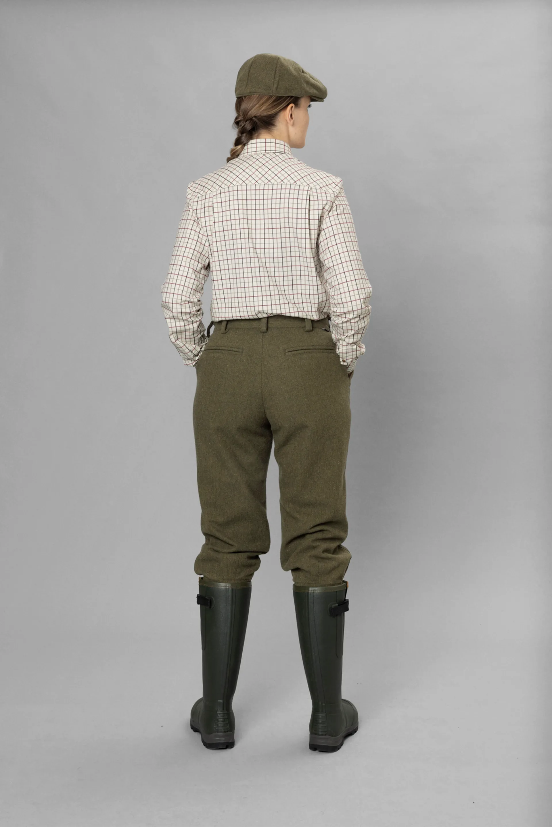 The Hillside Harriet Breeks for Women encapsulate British shooting elegance. Crafted from a luxurious blend of 40% wool and 60% polyester, they provide a classic tweed look while ensuring durability. A Seetex® membrane with taped seams provides added weather resistance. These breeks feature faux suede trims, adjustable waist details and a range of pockets for practicality. Complete the look with the Harriet Hillside waistcoat and jacket. Perfect for those seeking style without compromising on functionality.
