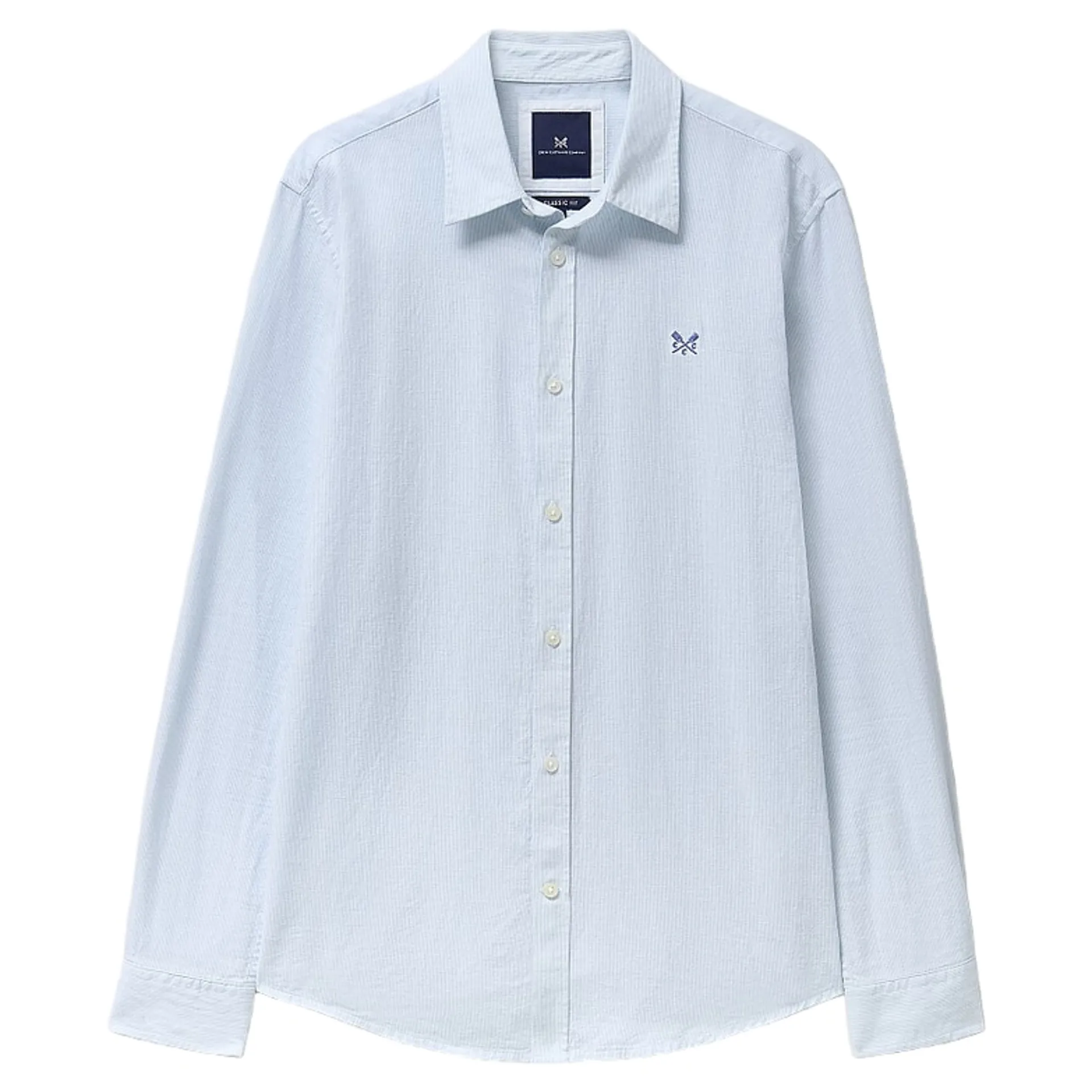 Crew Clothing Microstripe Long Sleeve Linen Shirt in Light Blue/White