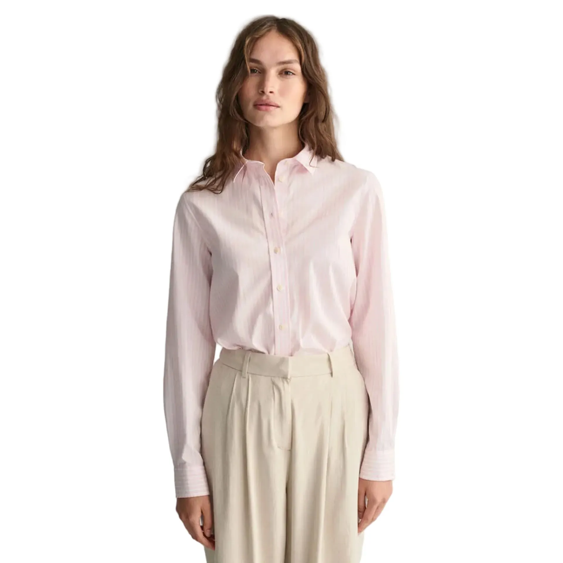 Question(s) answered about Gant Ladies Regular Fit Classic Striped Poplin Shirt Light Pink