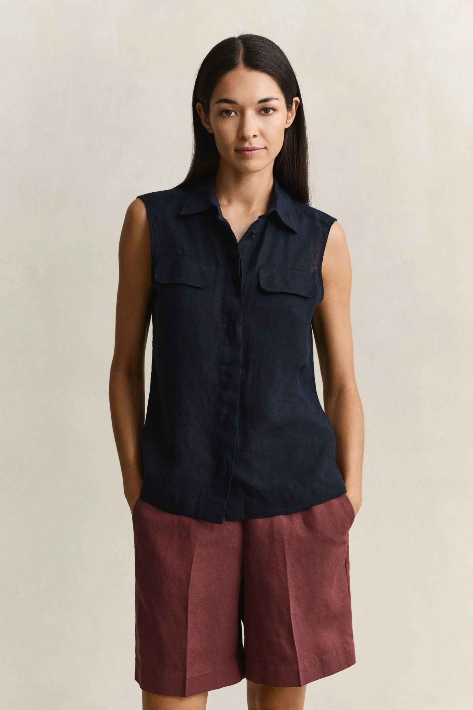 Question(s) answered about Gant Sleeveless Linen Shirt in Black