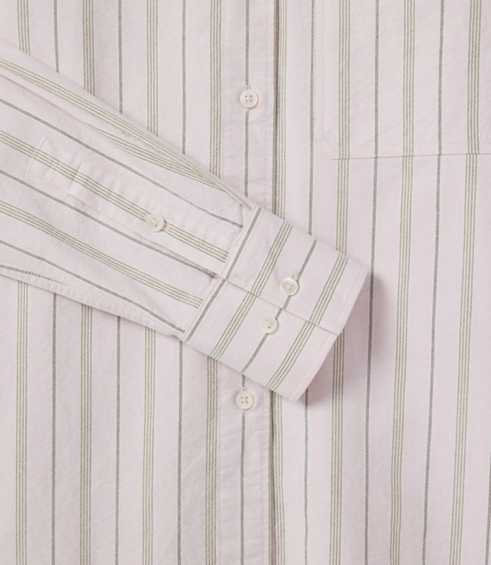 This style is cut from a washed striped oxford, which naturally has a more relaxed, lived-in look.